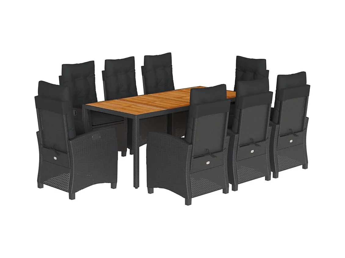 Set da Pranzo da Giardino 9 pz in Polyrattan e Acacia Nero