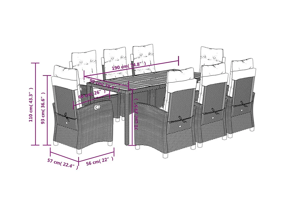 Set da Pranzo da Giardino 9 pz con Cuscini Nero in Polyrattan