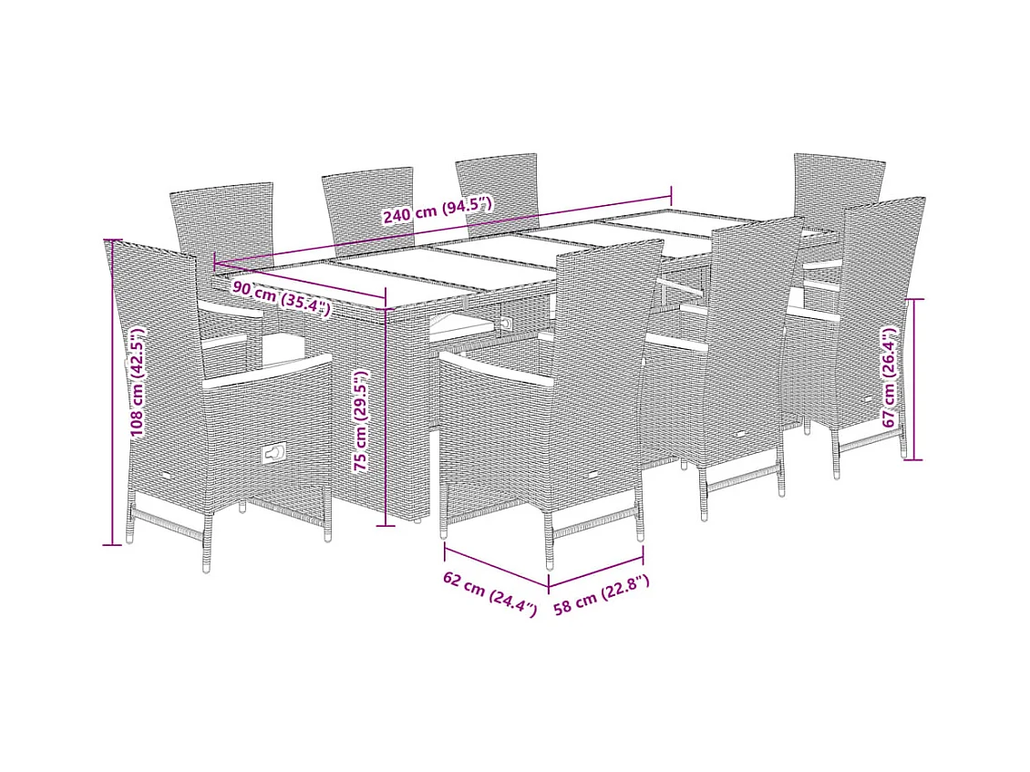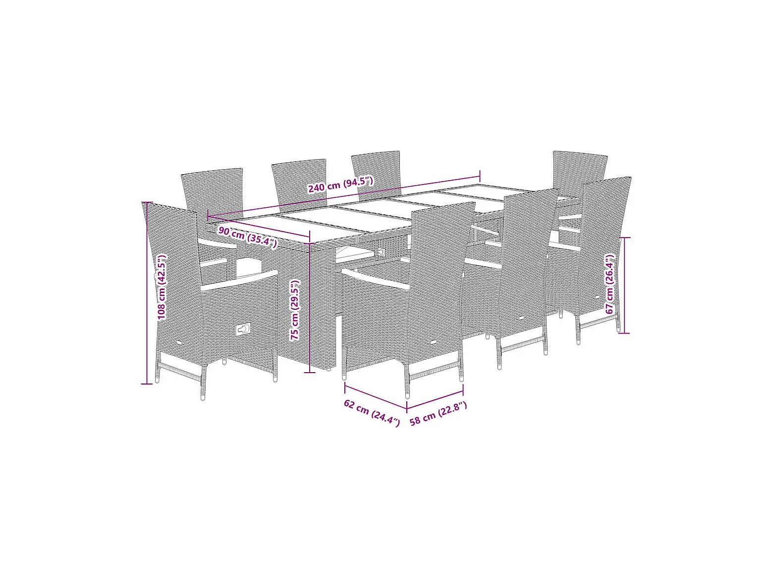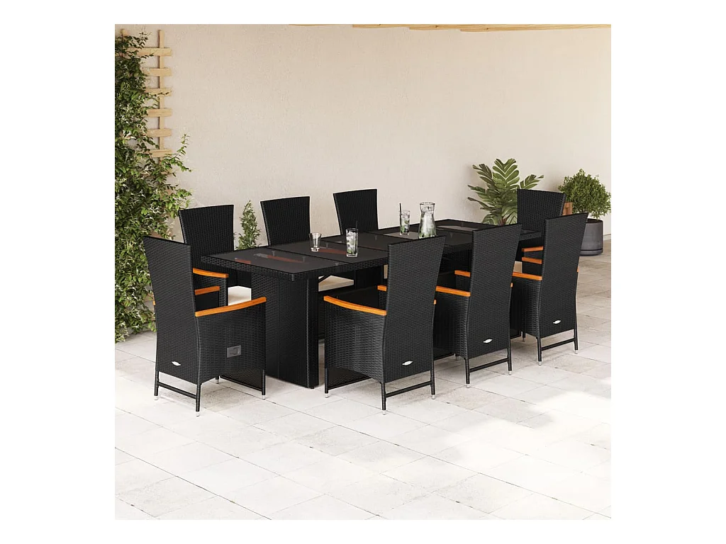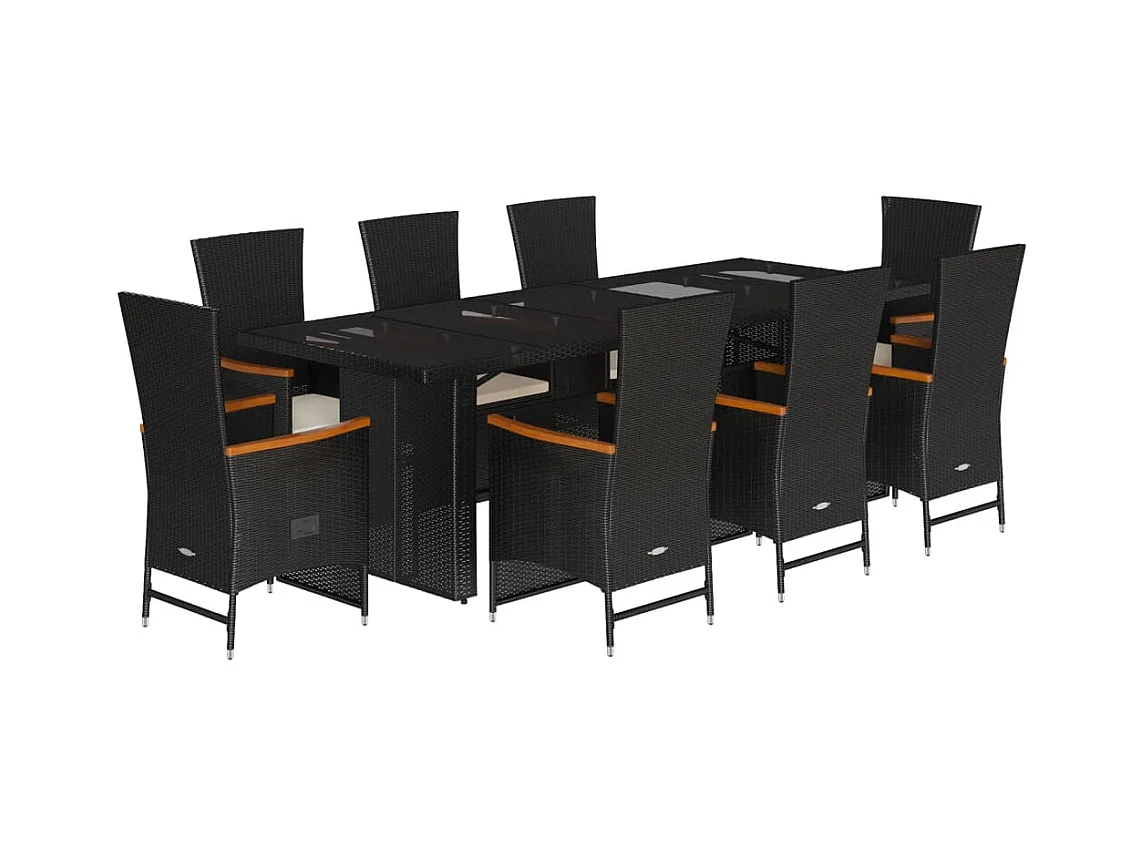 Set da Pranzo da Giardino 9 pz con Cuscini Nero in Polyrattan