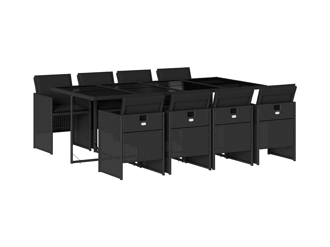 Set da Pranzo da Giardino 9 pz con Cuscini Nero in Polyrattan