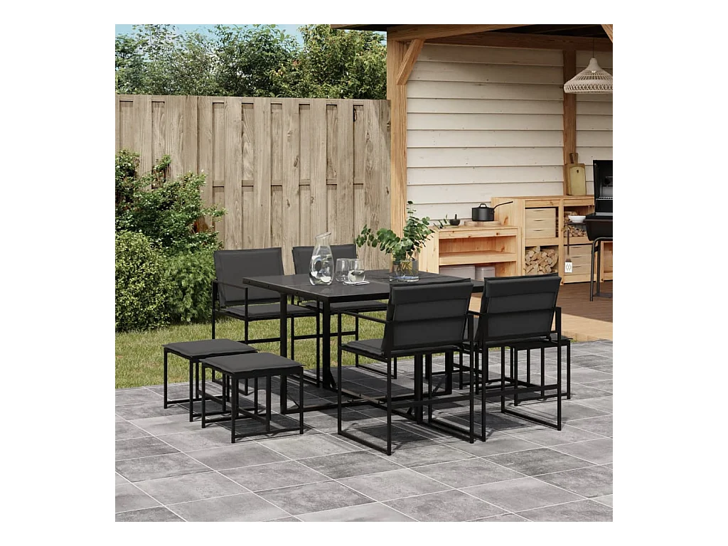Set da Pranzo da Giardino 9 pz con Cuscini Nero in Textilene