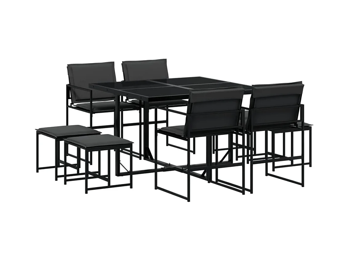 Set da Pranzo da Giardino 9 pz Nero in Textilene