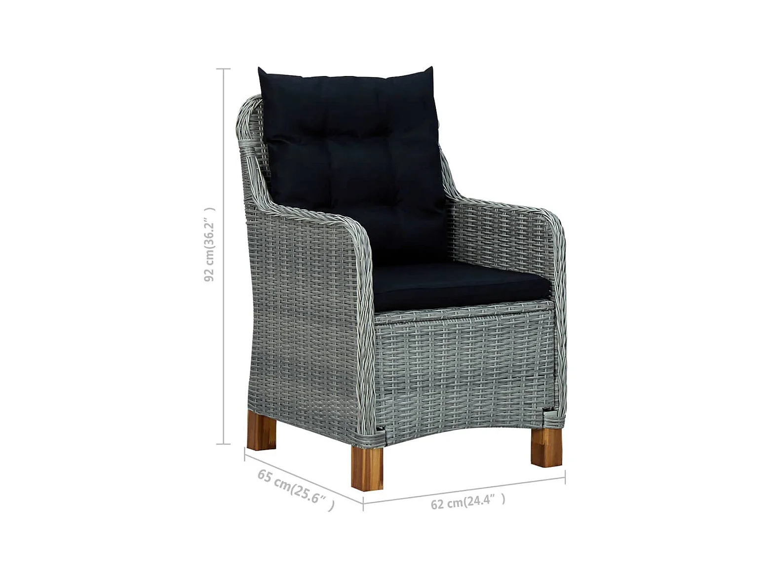 Set Pranzo da Giardino 9pz con Cuscini Polyrattan Grigio Chiaro