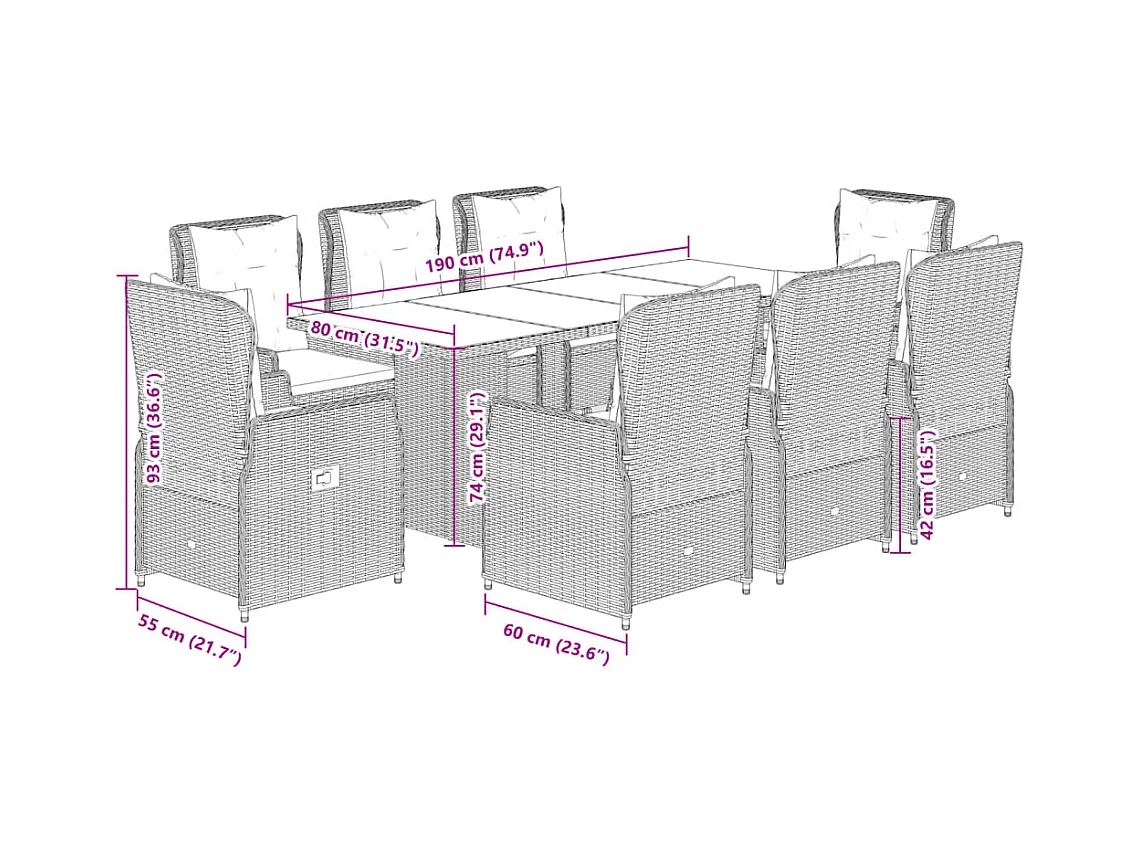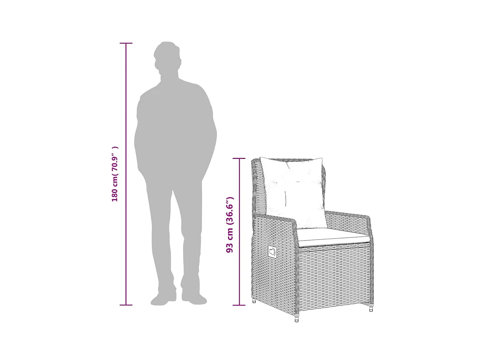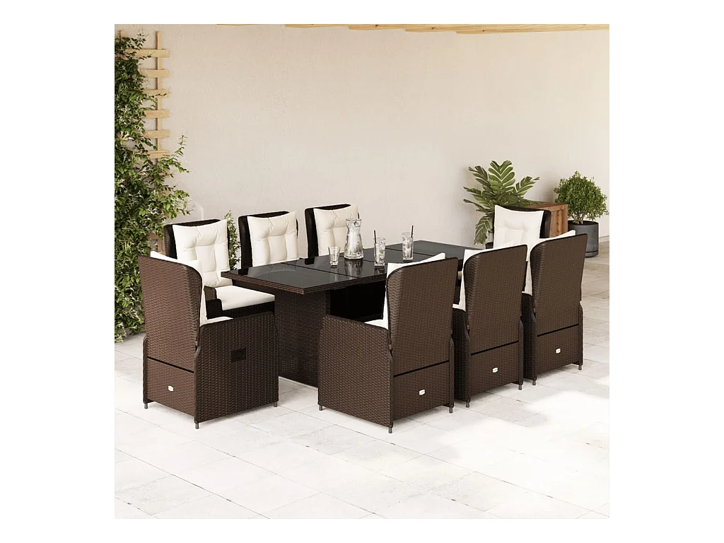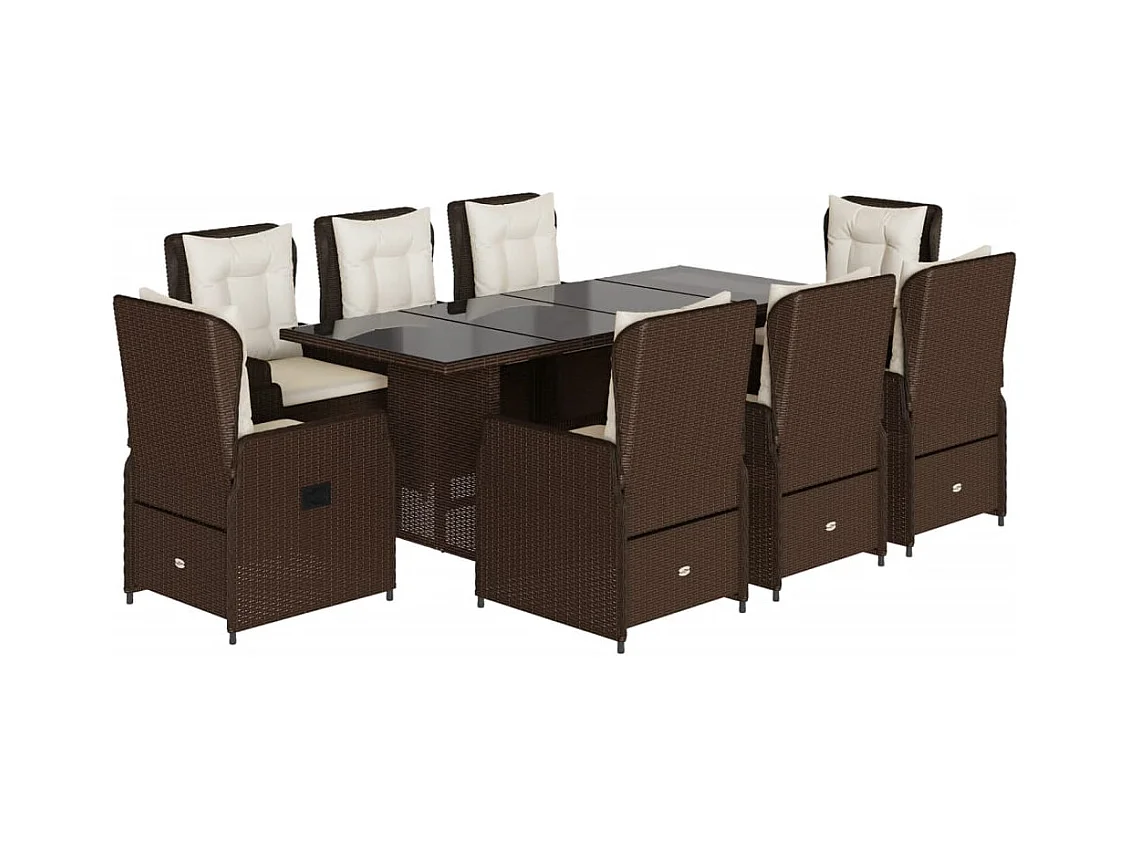 Set da Pranzo da Giardino 9pz con Cuscini Marrone in Polyrattan