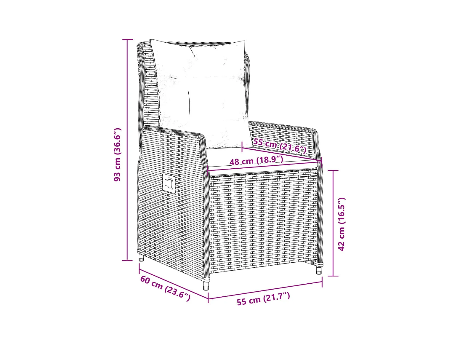Set da Pranzo da Giardino 3pz con Cuscini Polyrattan e Vetro
