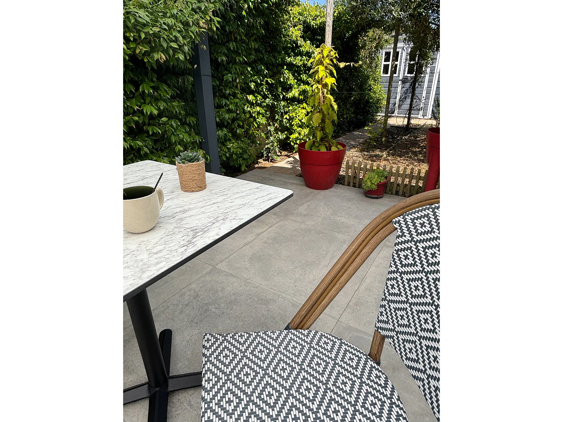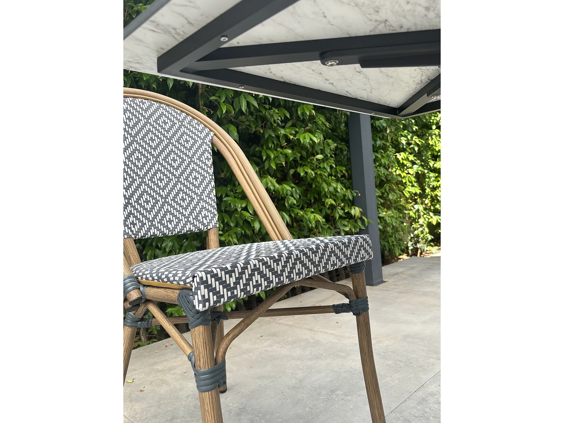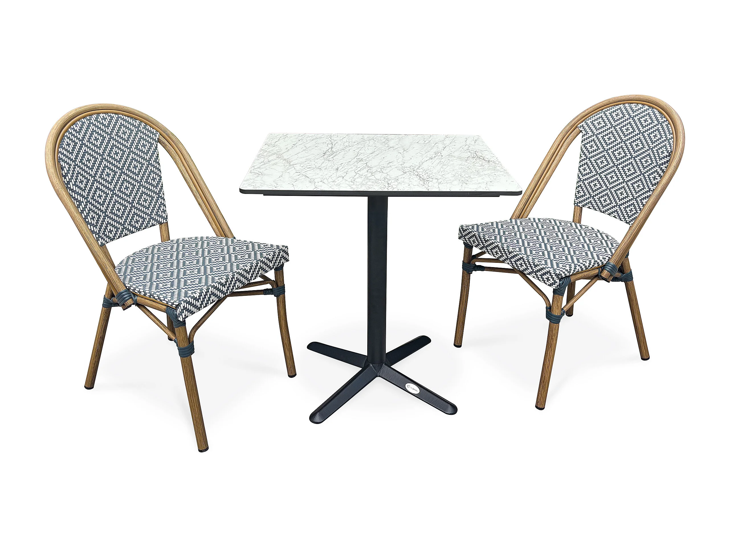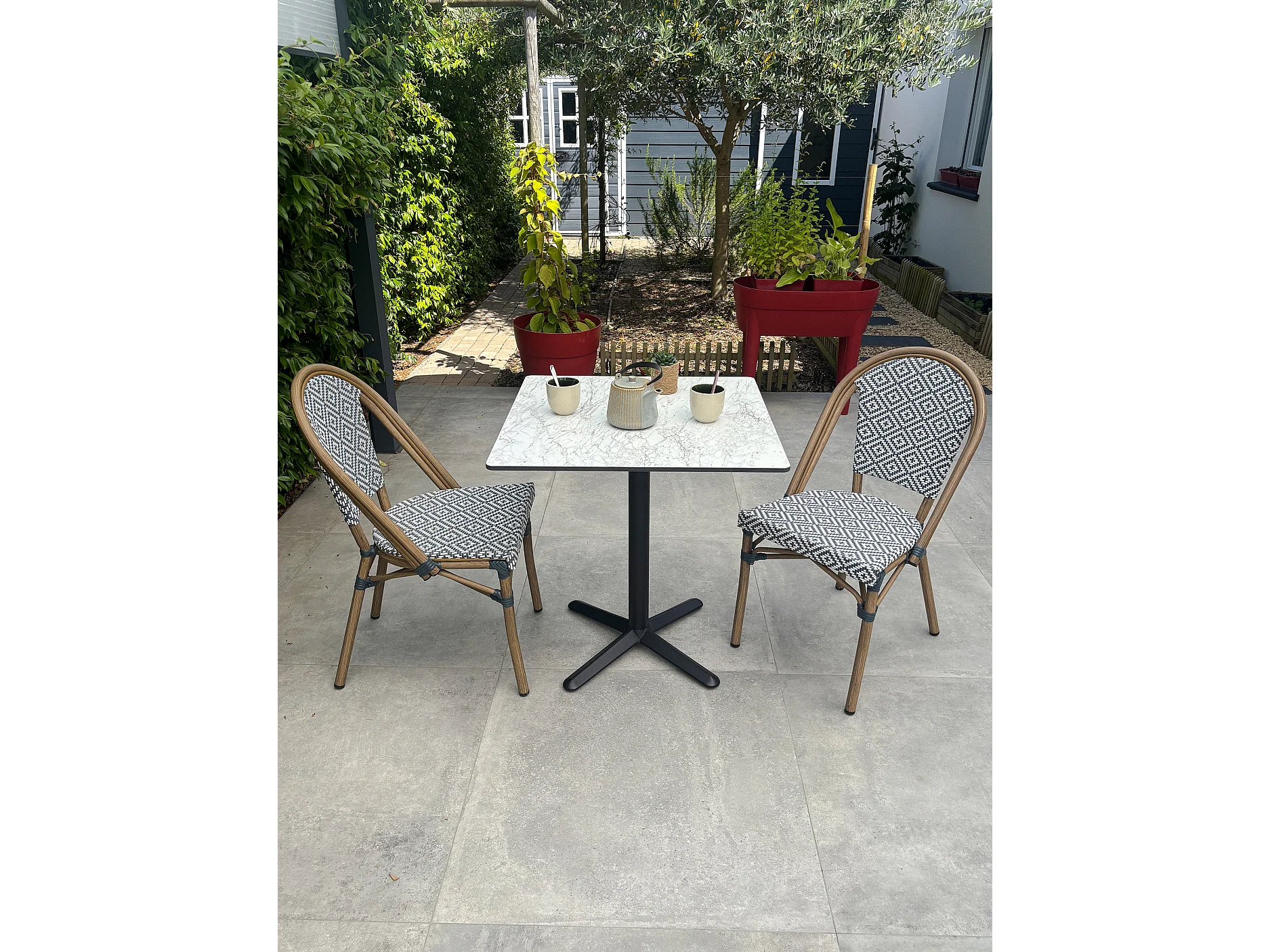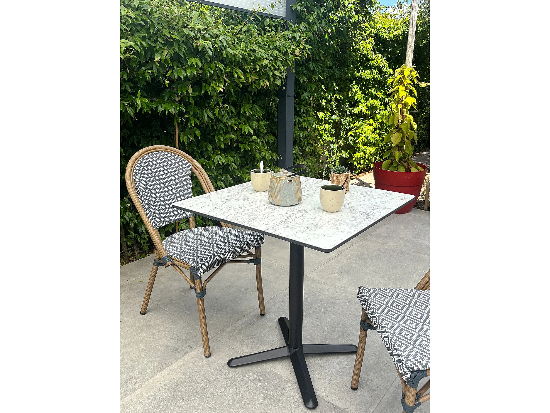 Set da pranzo da giardino a 2 posti in acciaio con piano in HPL