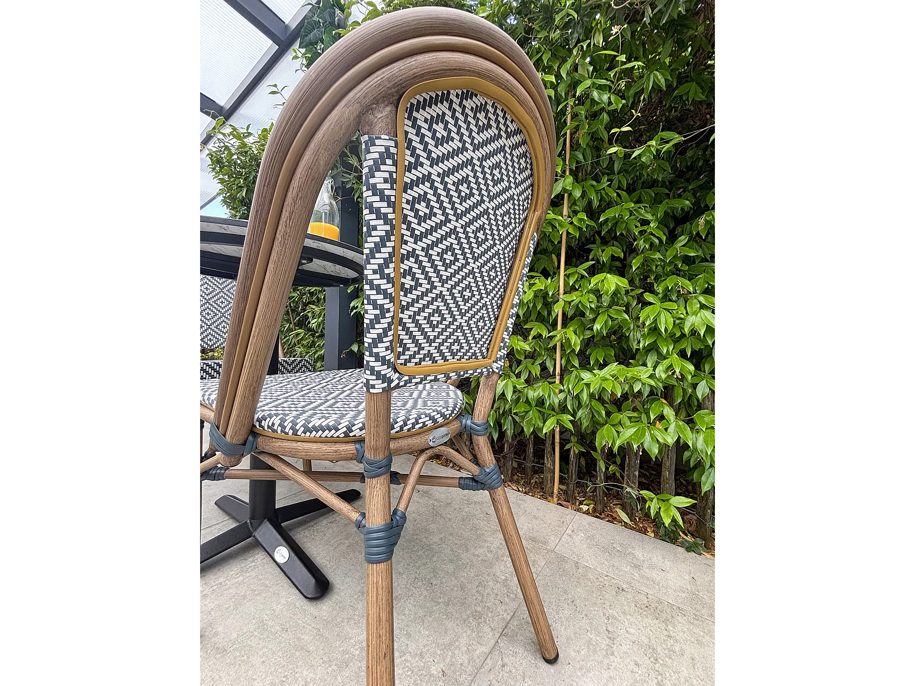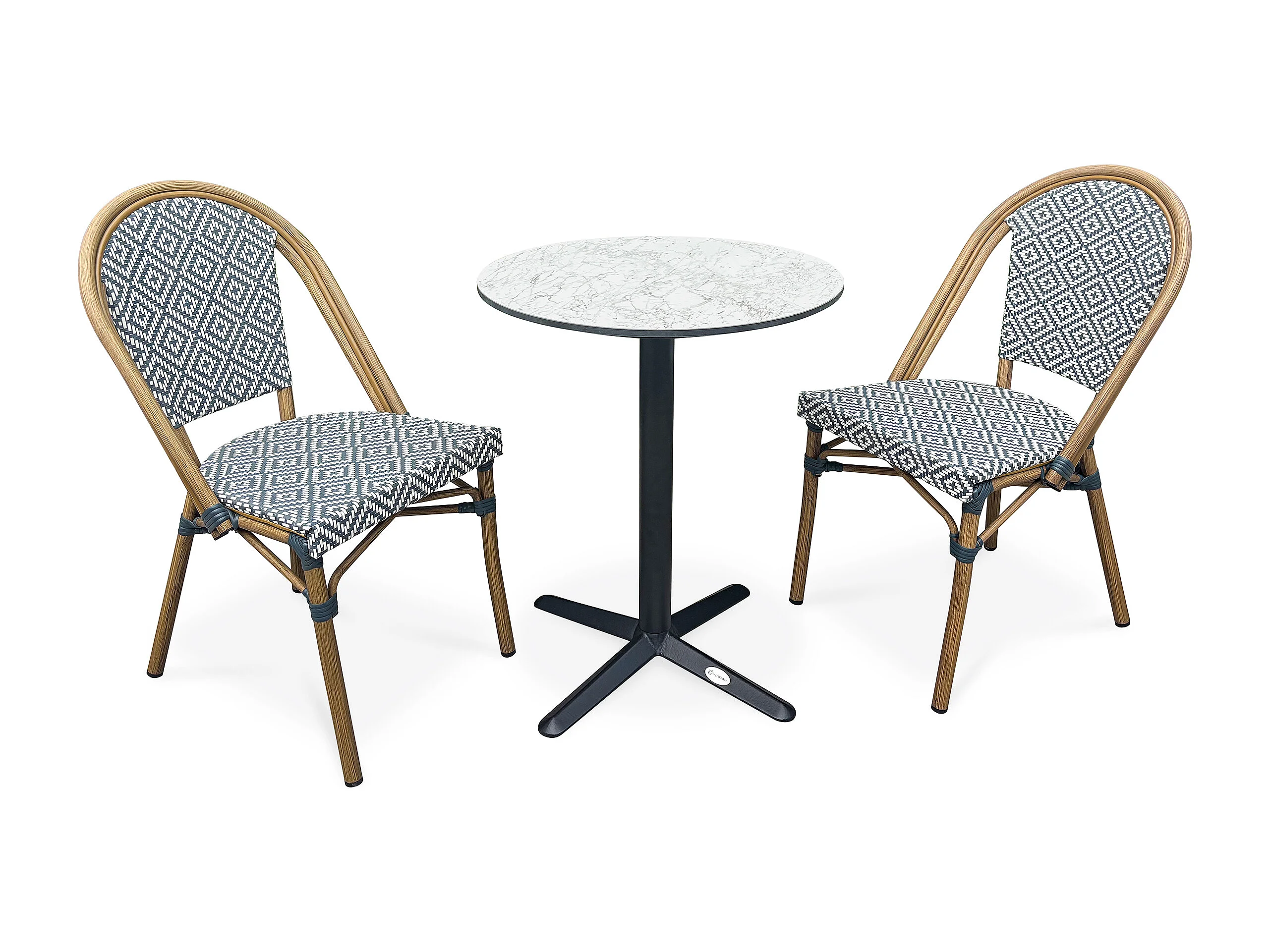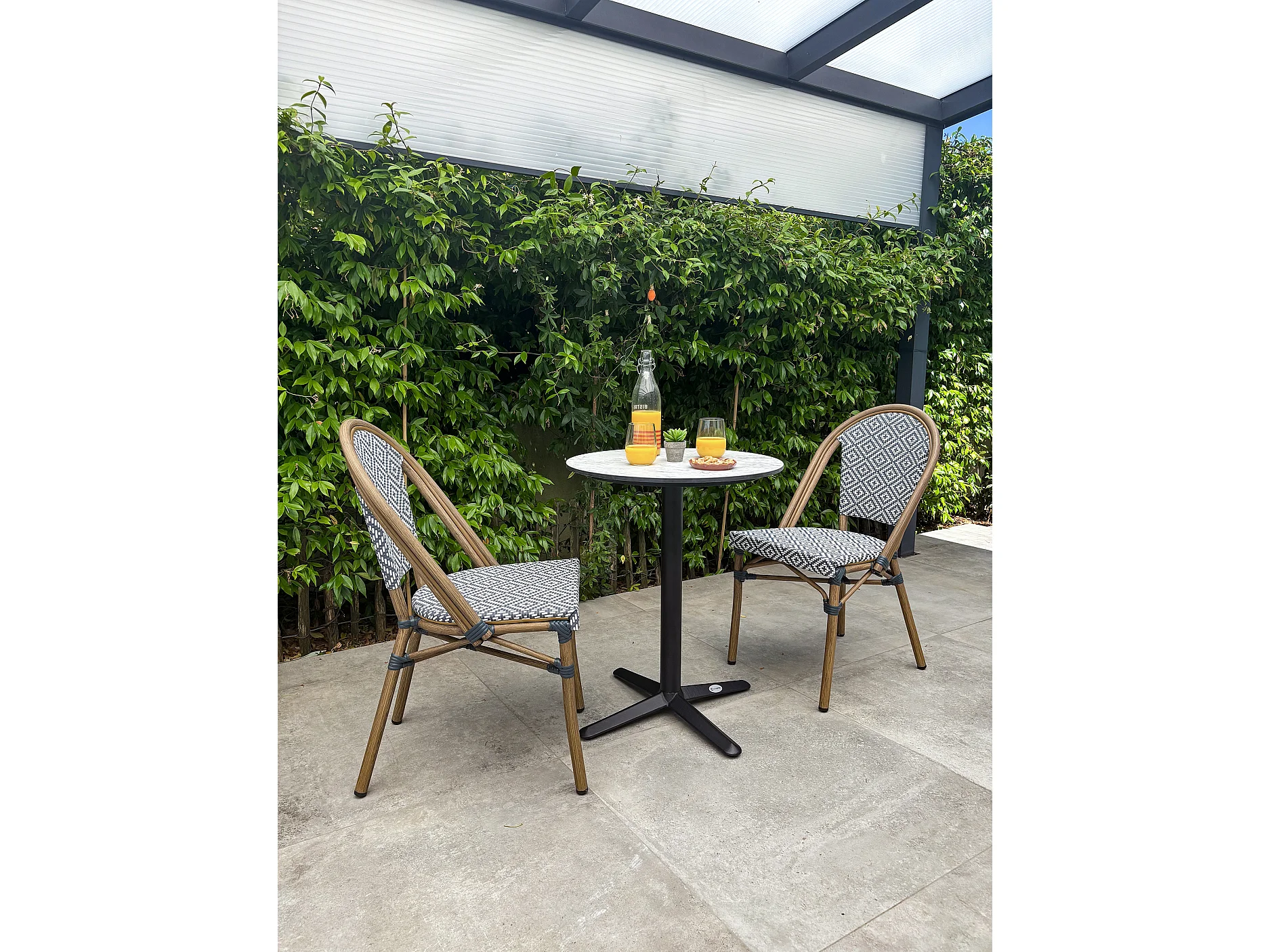 Set da pranzo da giardino a 2 posti in acciaio con piano in HPL