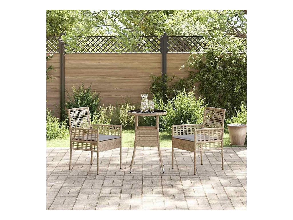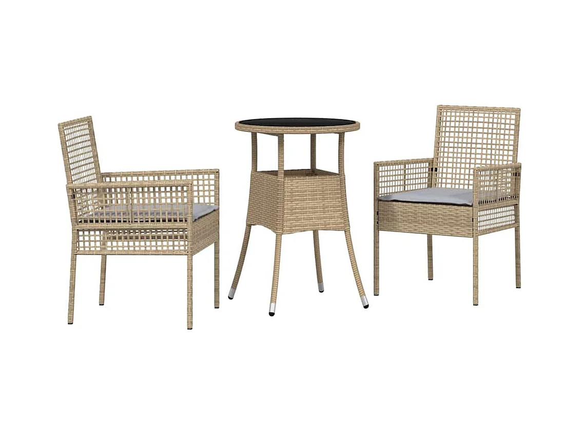 Set da pranzo da giardino composto da 3 pezzi con cuscini in polyrattan beige