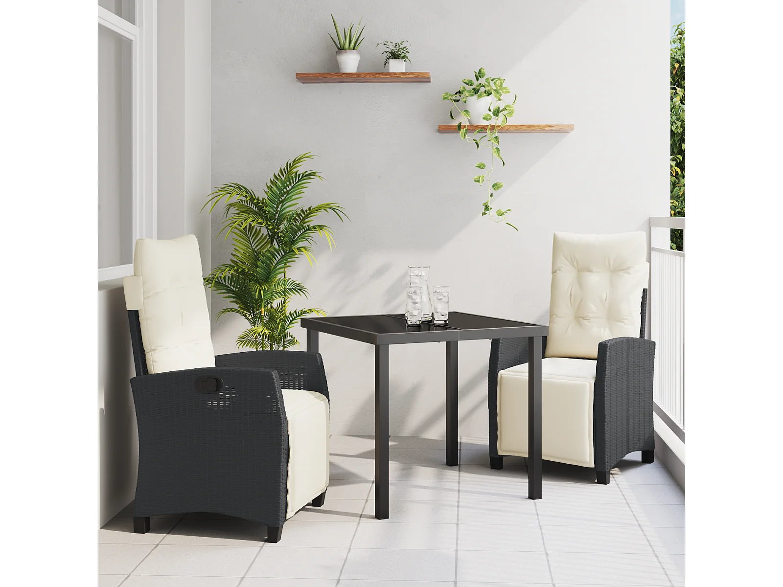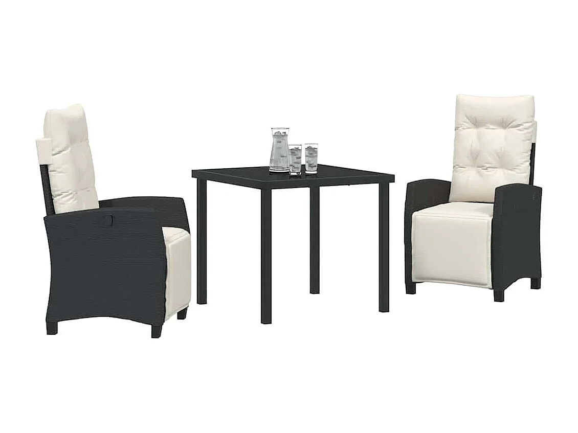 Set da giardino 3 pezzi con cuscini in polyrattan nero