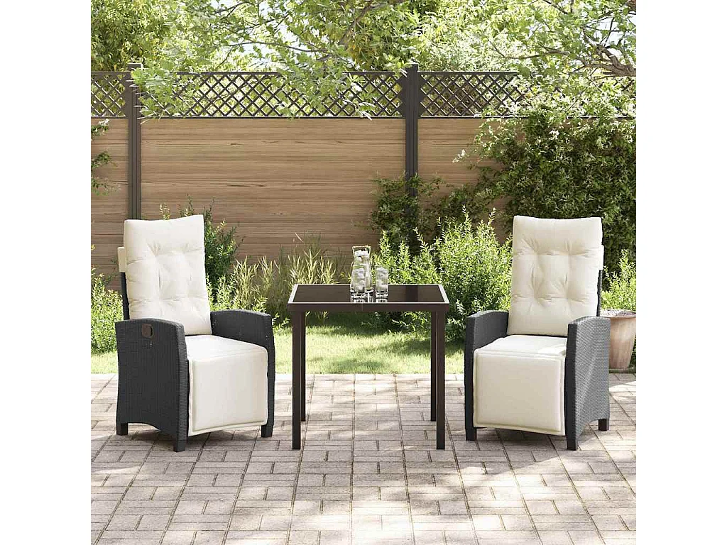 Set da pranzo da giardino 3 pezzi con cuscini in rattan sintetico nero