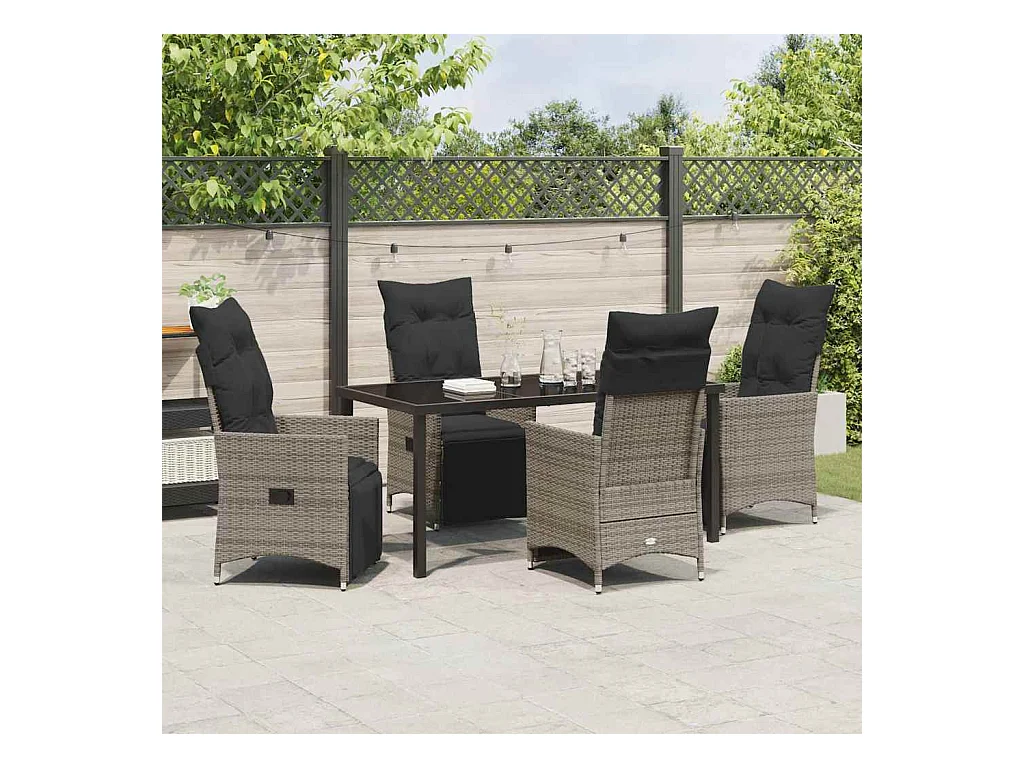 Set da pranzo da giardino da 5 pezzi con cuscini in polyrattan grigio