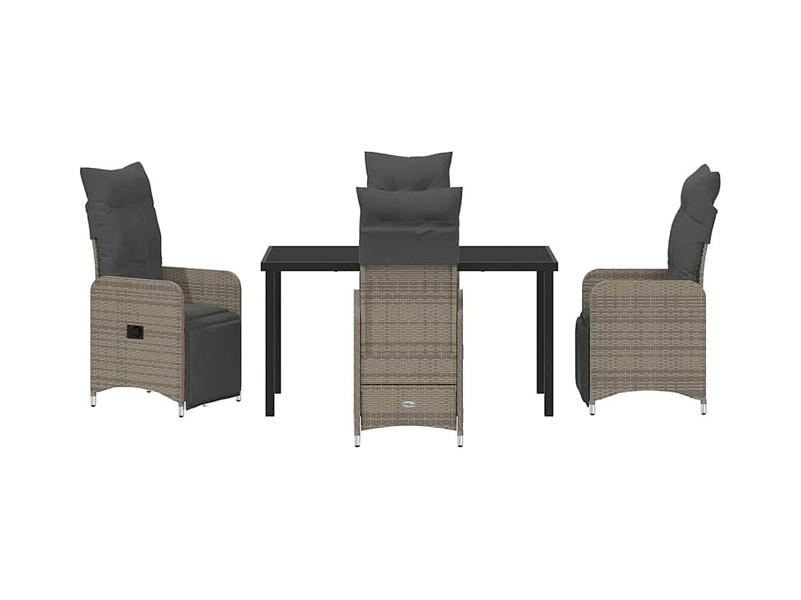 Set da pranzo da giardino da 5 pezzi con cuscini in polyrattan grigio