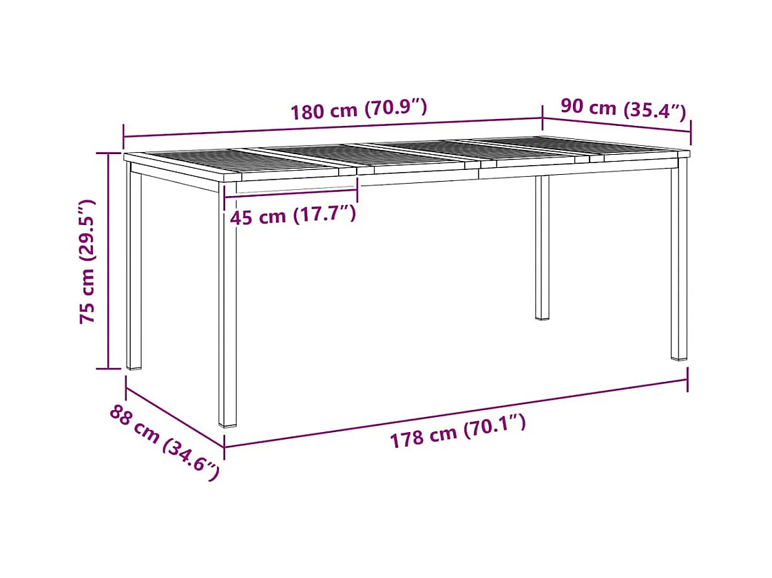Tavolo da pranzo per esterni in legno massello di acacia marrone