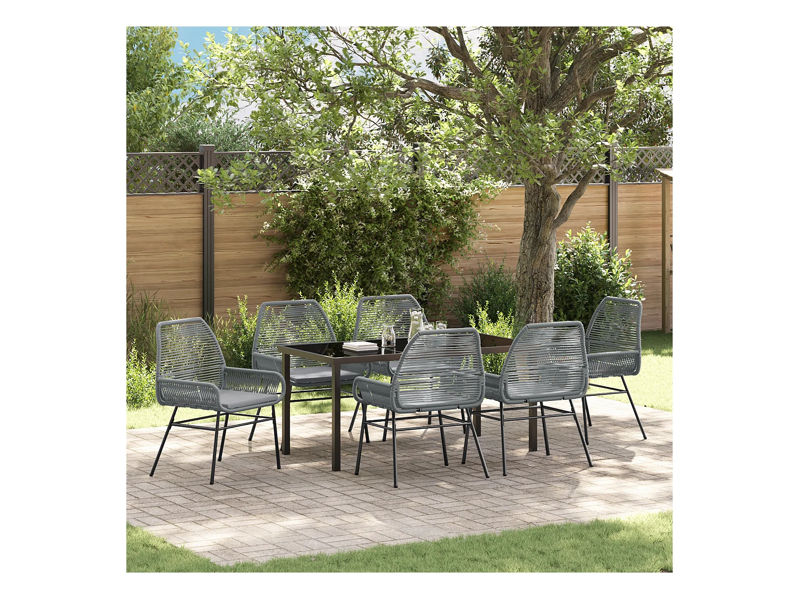 Set da pranzo da giardino da 7 pezzi con cuscini in polyrattan grigio