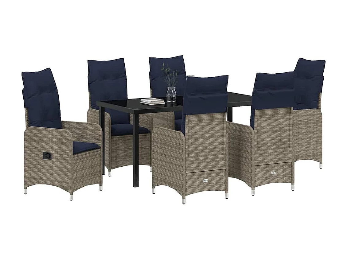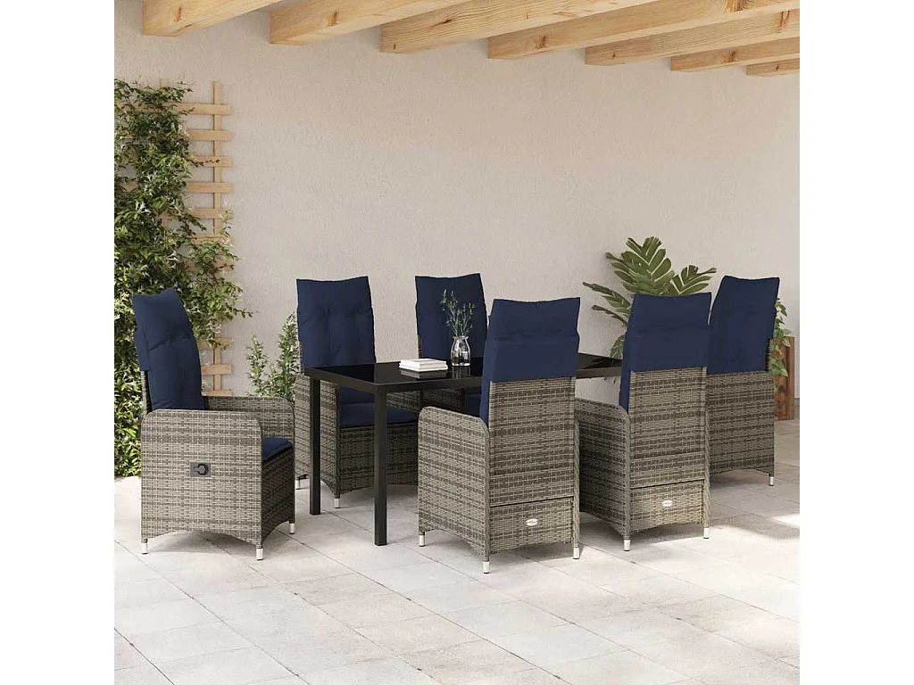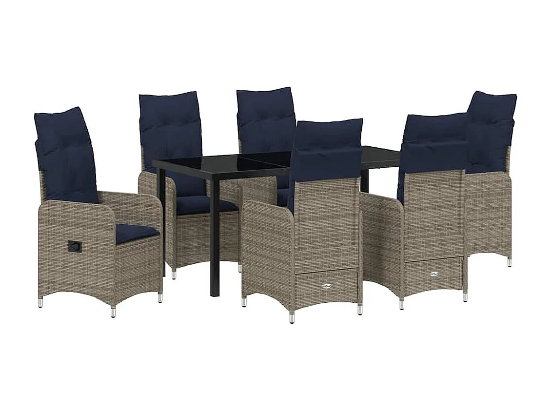 Set da cucina da giardino da 7 pezzi con cuscini in rattan nero PE