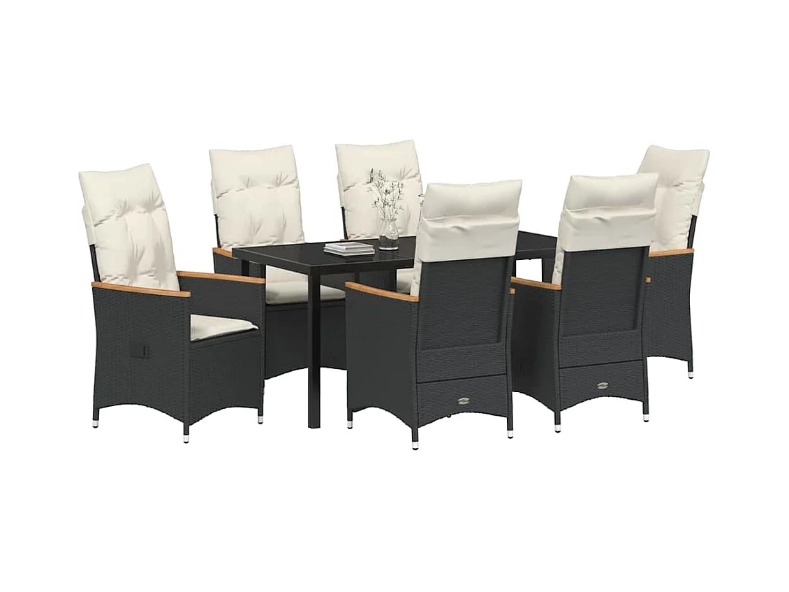 Set da pranzo da giardino da 7 pezzi con cuscini in polyrattan nero