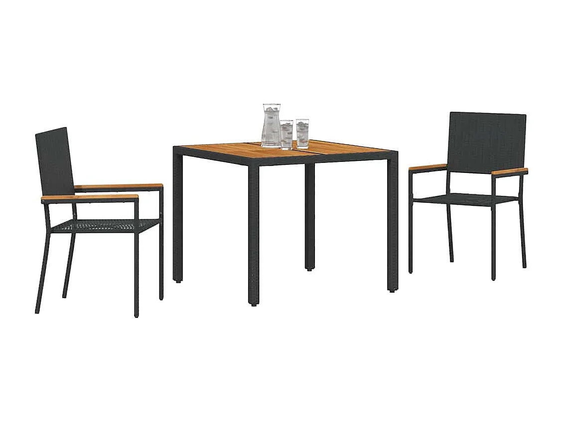 Set da pranzo da giardino in polyrattan nero, 3 pezzi