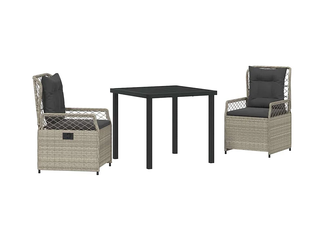 Set da pranzo da giardino in polyrattan grigio chiaro da 3 pezzi