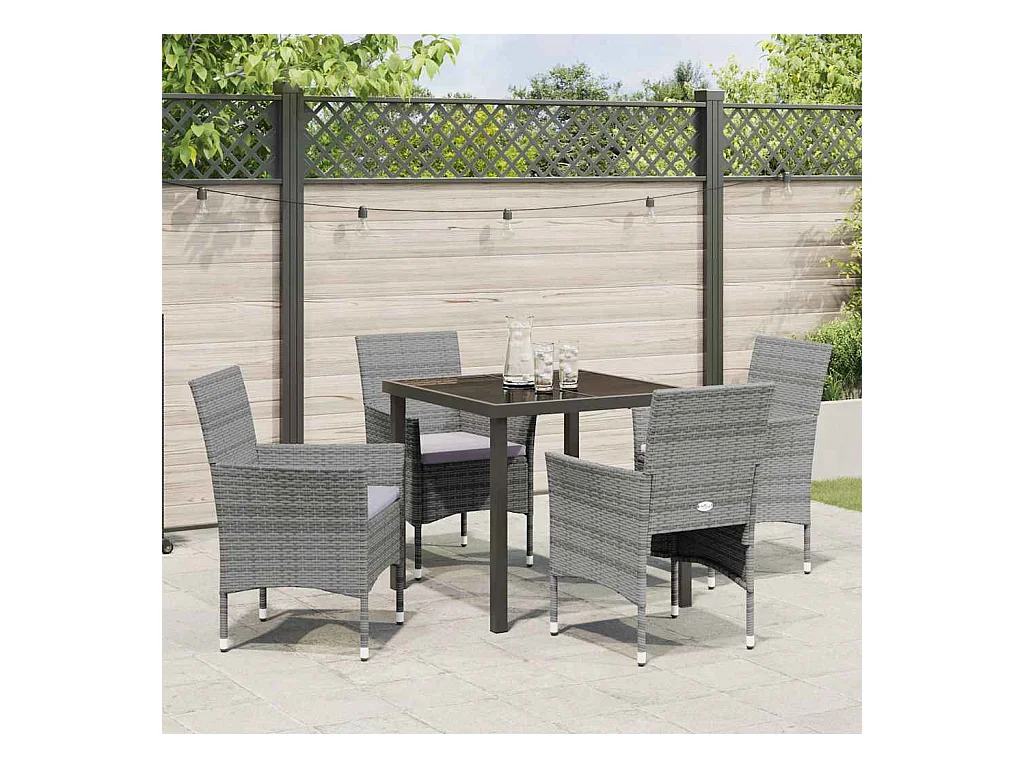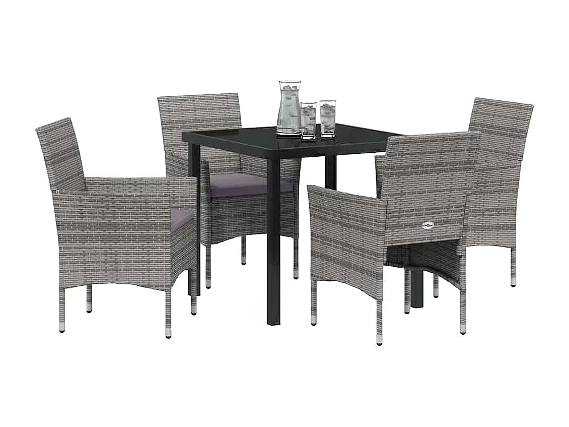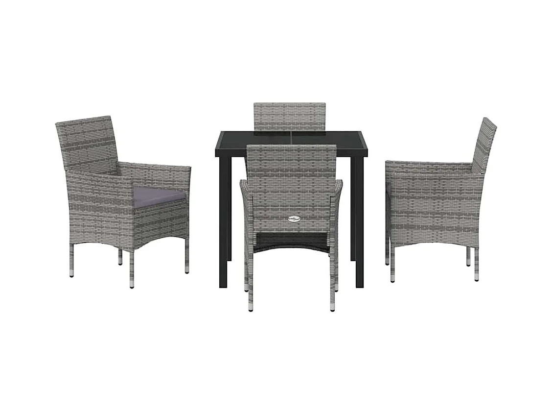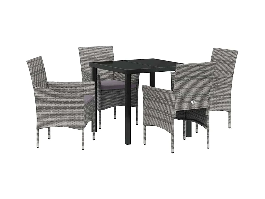 Set da pranzo da giardino 5 pezzi con cuscini grigi in polyrattan