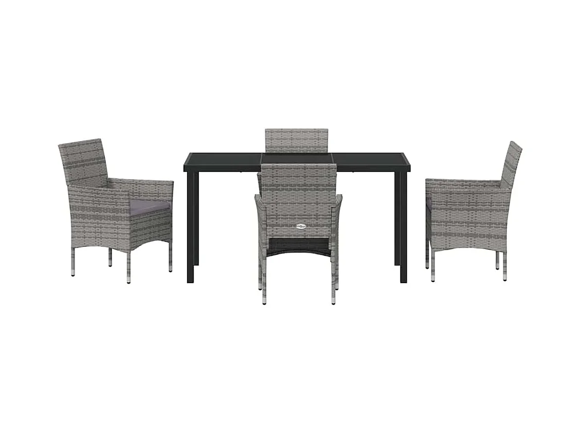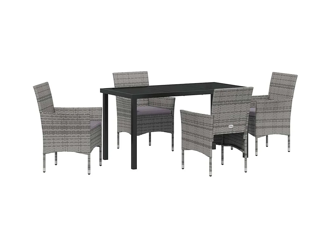 Set da pranzo da giardino in polyrattan grigio da 5 pezzi