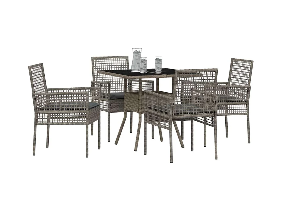 Set da pranzo da giardino in polyrattan grigio da 5 pezzi
