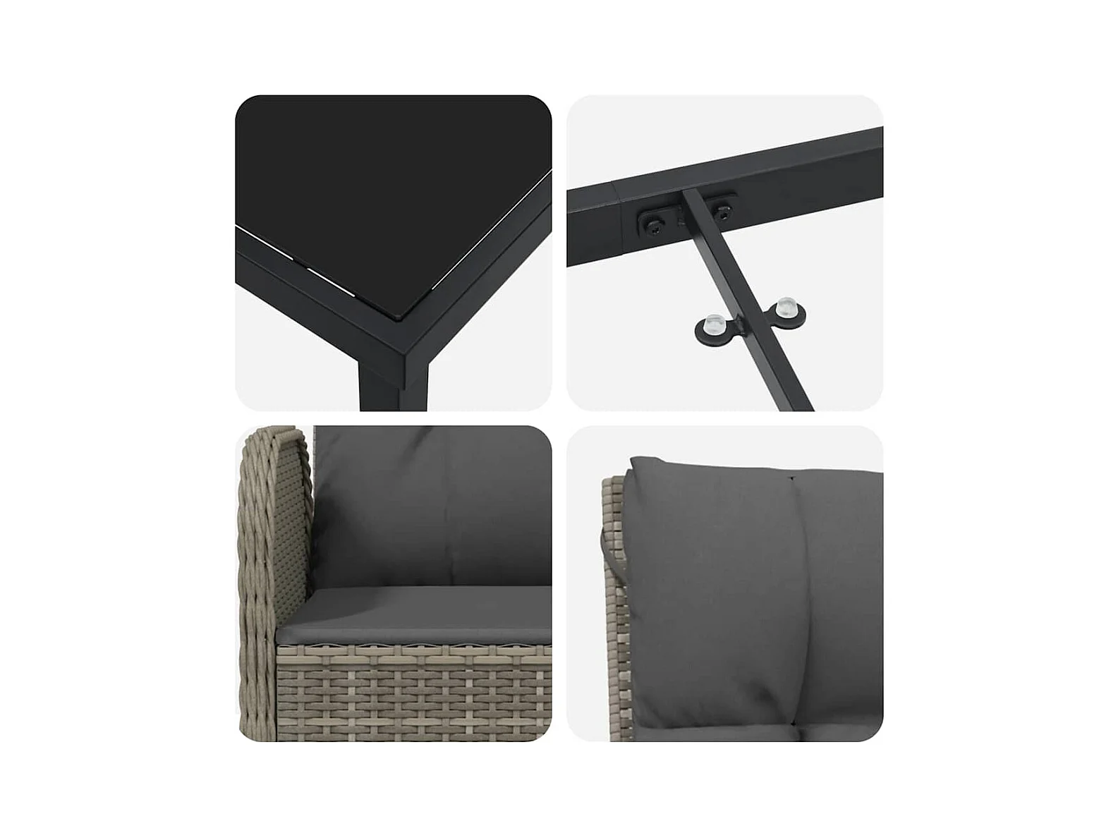 Set da pranzo da giardino in polyrattan grigio da 7 pezzi
