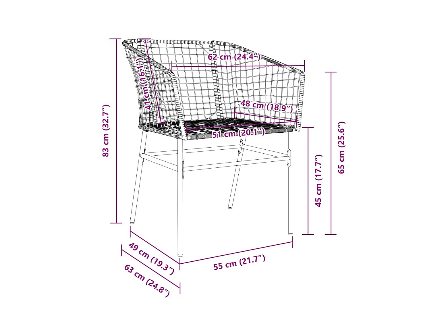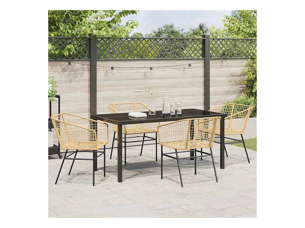 Set da pranzo da giardino in polyrattan marrone da 5 pezzi