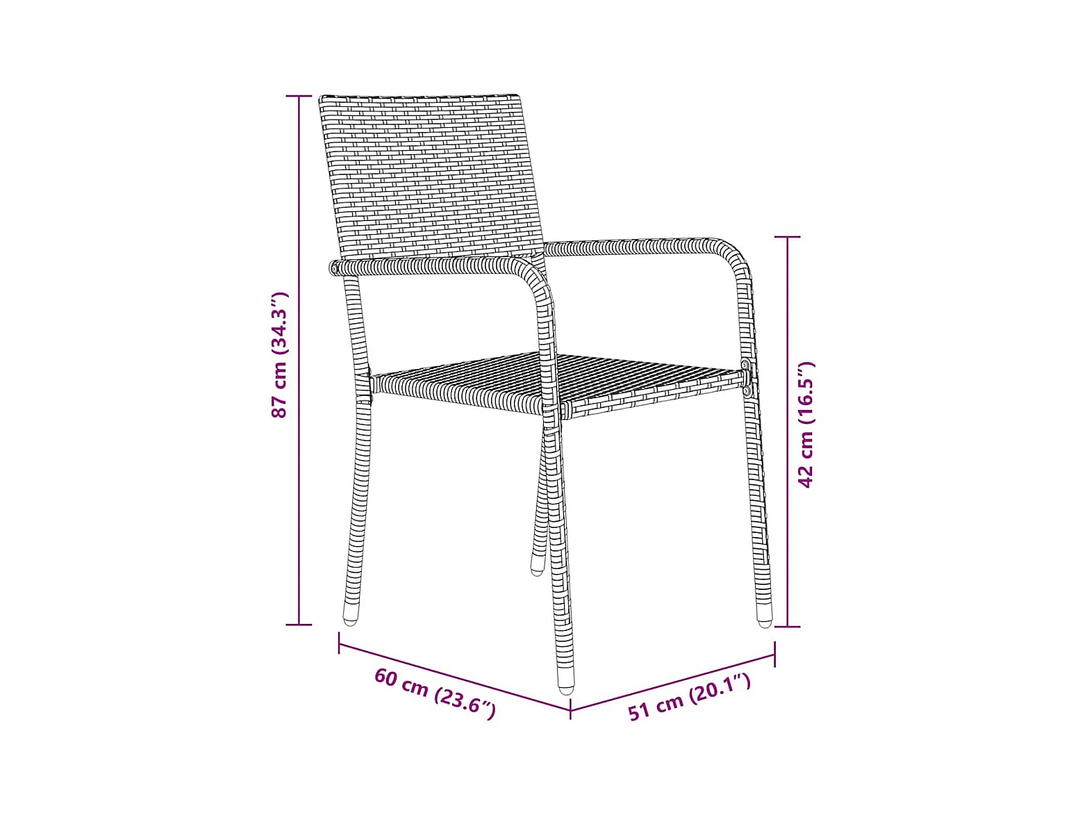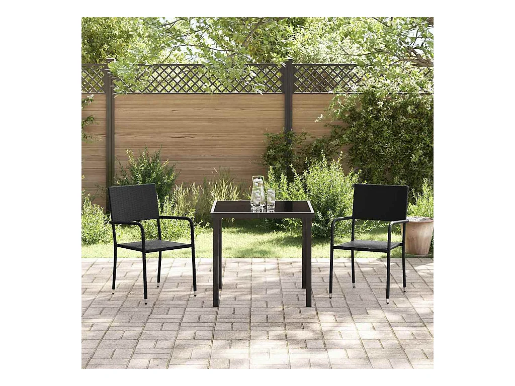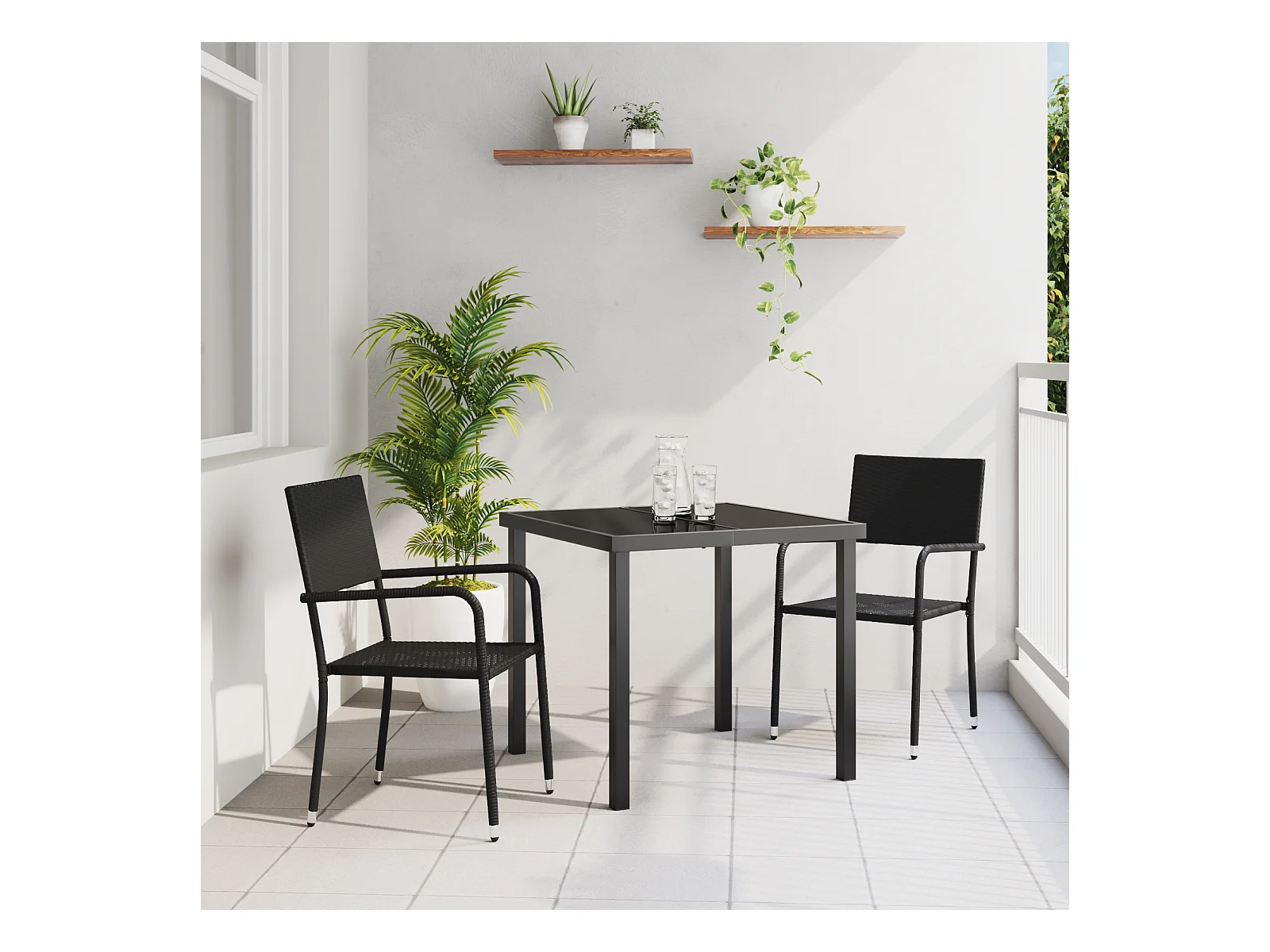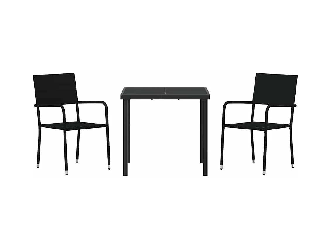 Set da pranzo da giardino in polyrattan nero da 3 pezzi