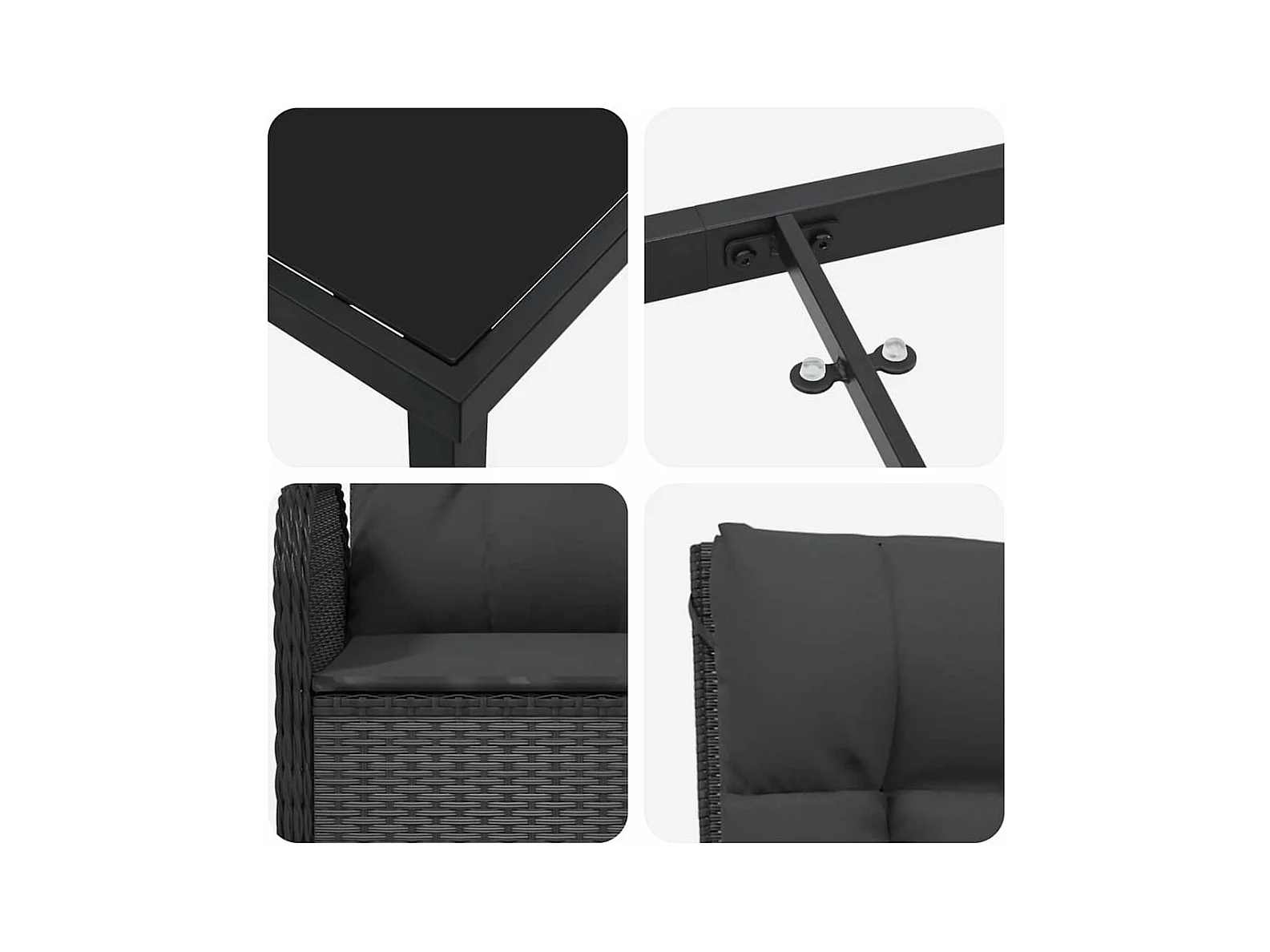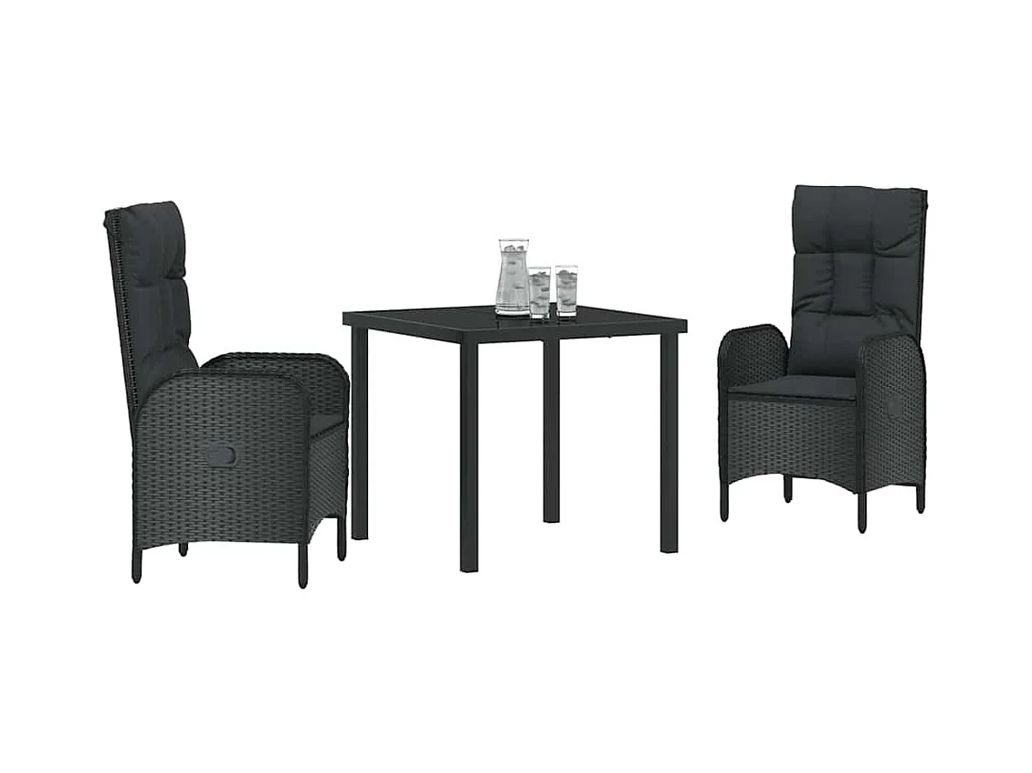 Set da pranzo da giardino in polyrattan nero da 3 pezzi