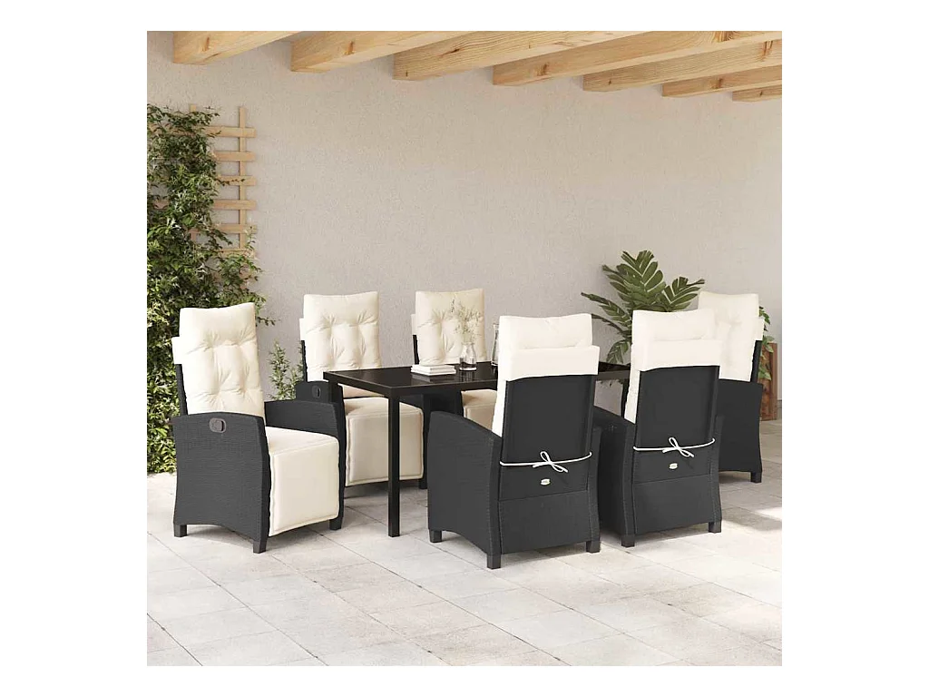 Set da pranzo da giardino in polyrattan nero da 7 pezzi