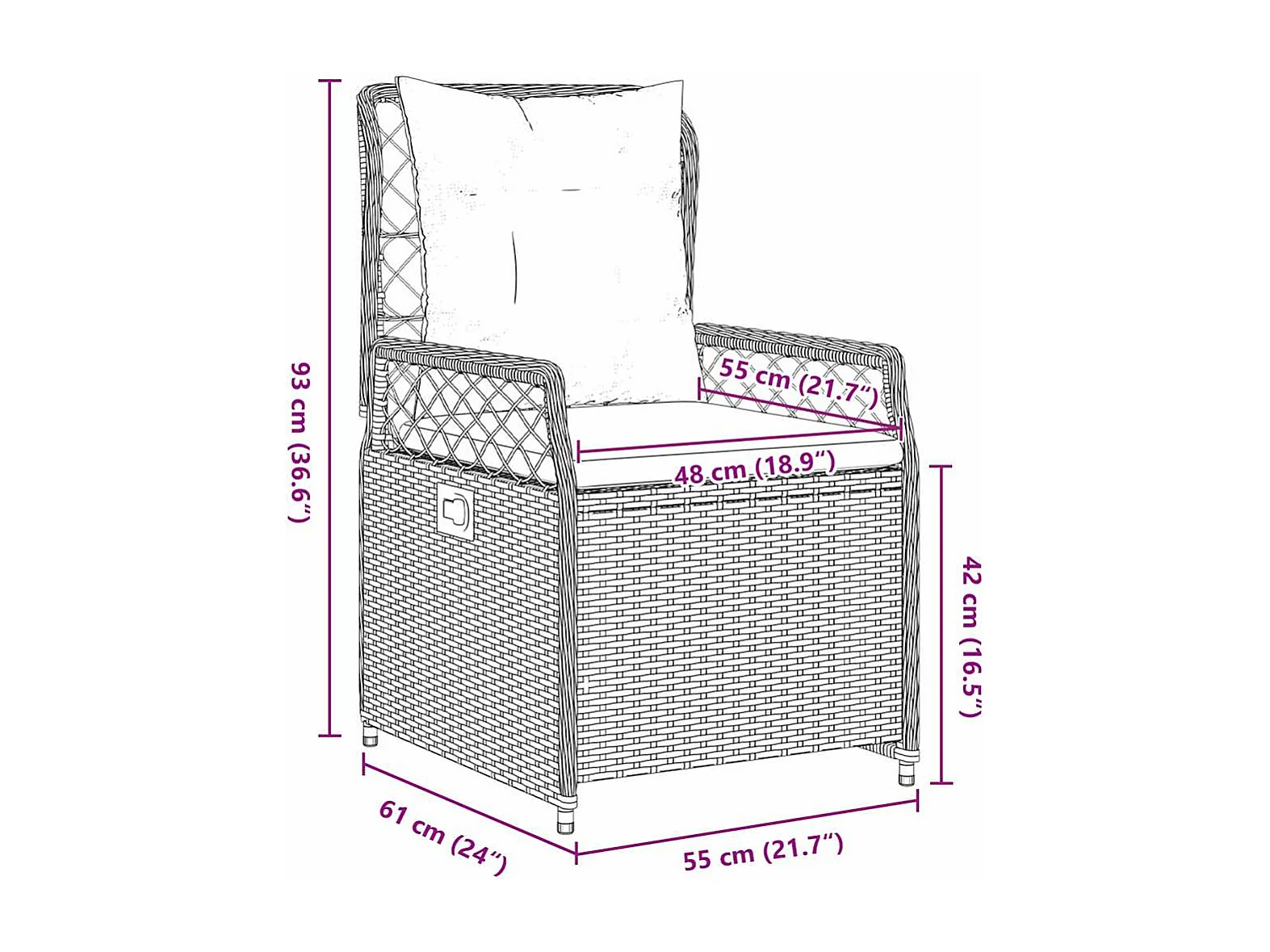 Set da pranzo da giardino 5 pezzi con cuscini in rattan grigio poly