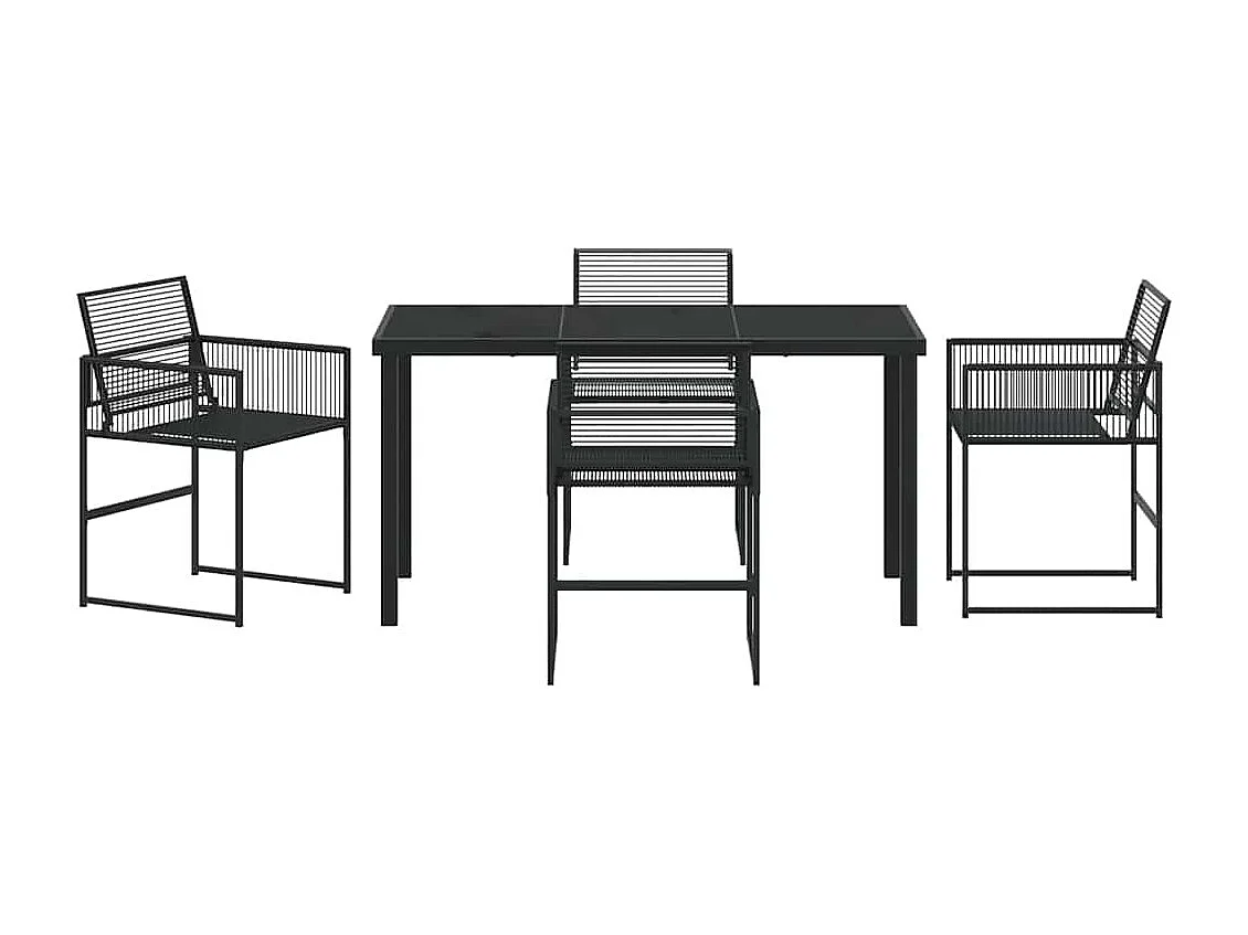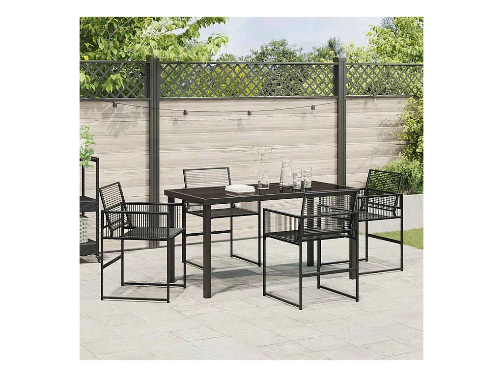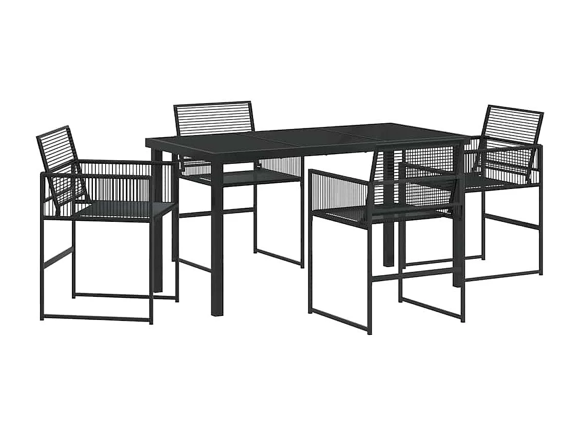 Set da pranzo da giardino in rattan nero da 5 pezzi