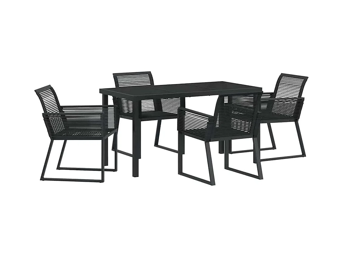 Set da pranzo da giardino in rattan nero da 5 pezzi