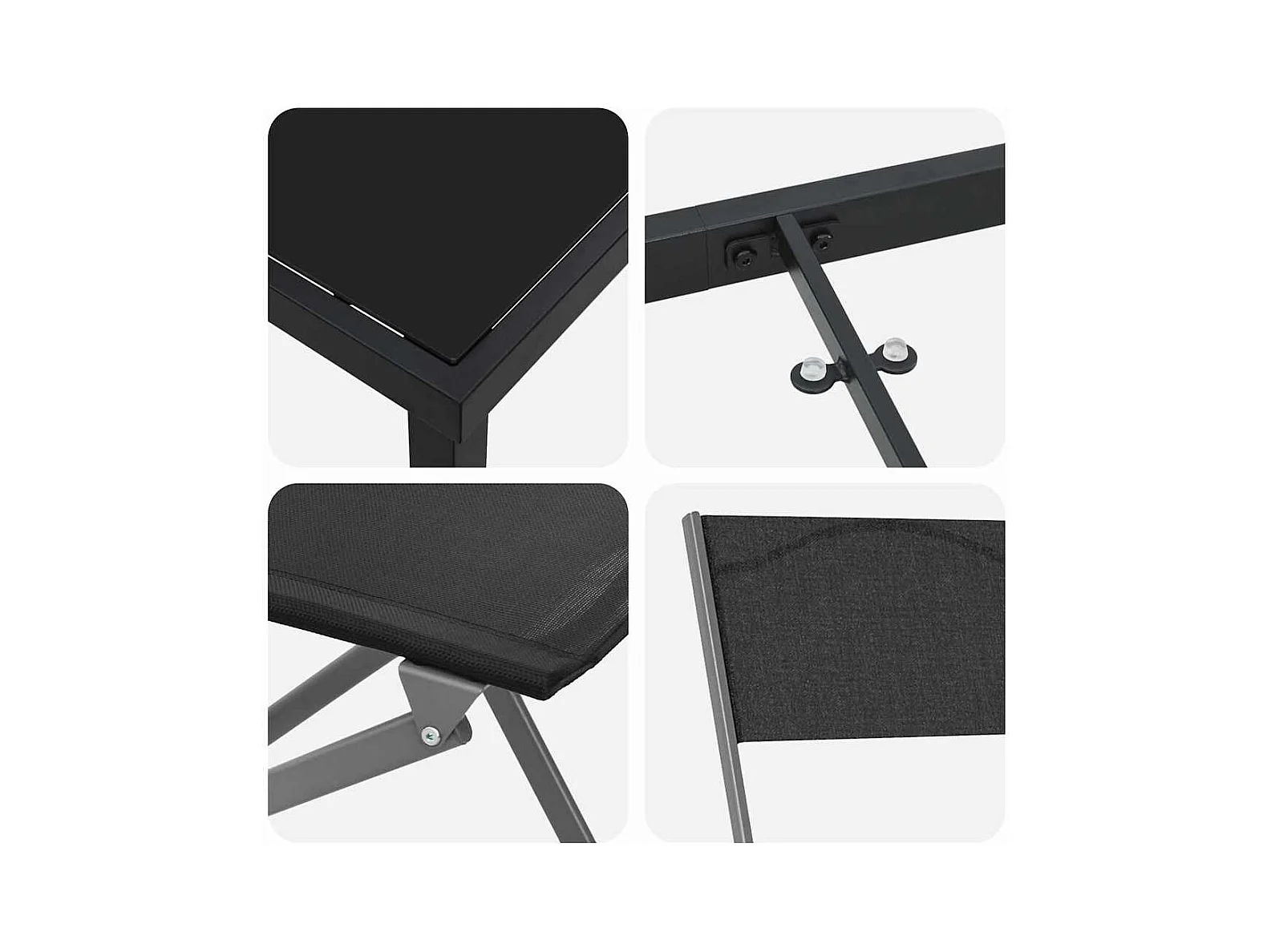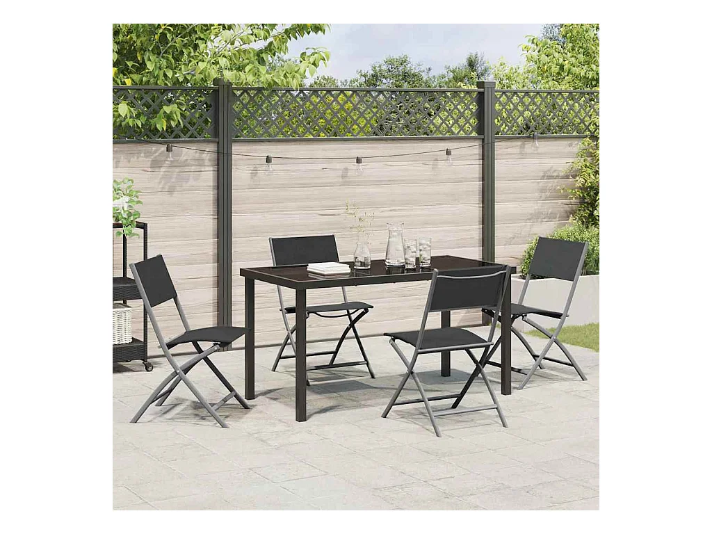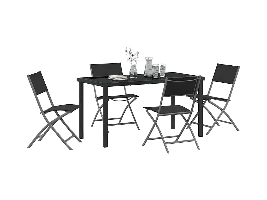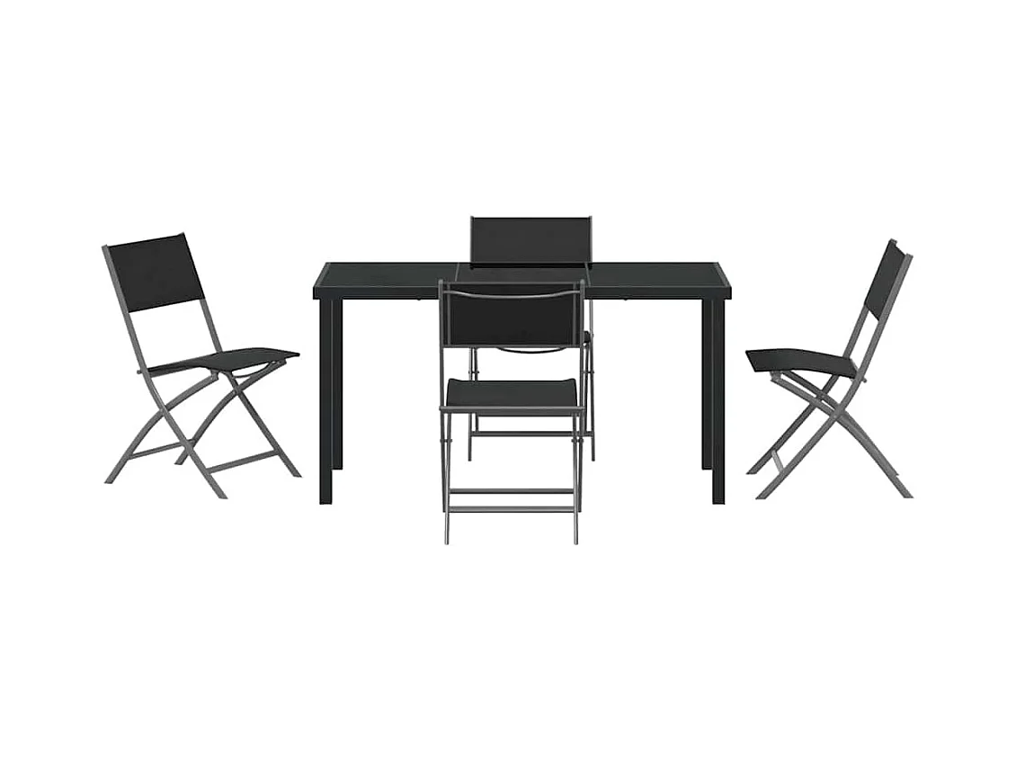 Set da pranzo da giardino in textilene e acciaio nero da 5 pezzi