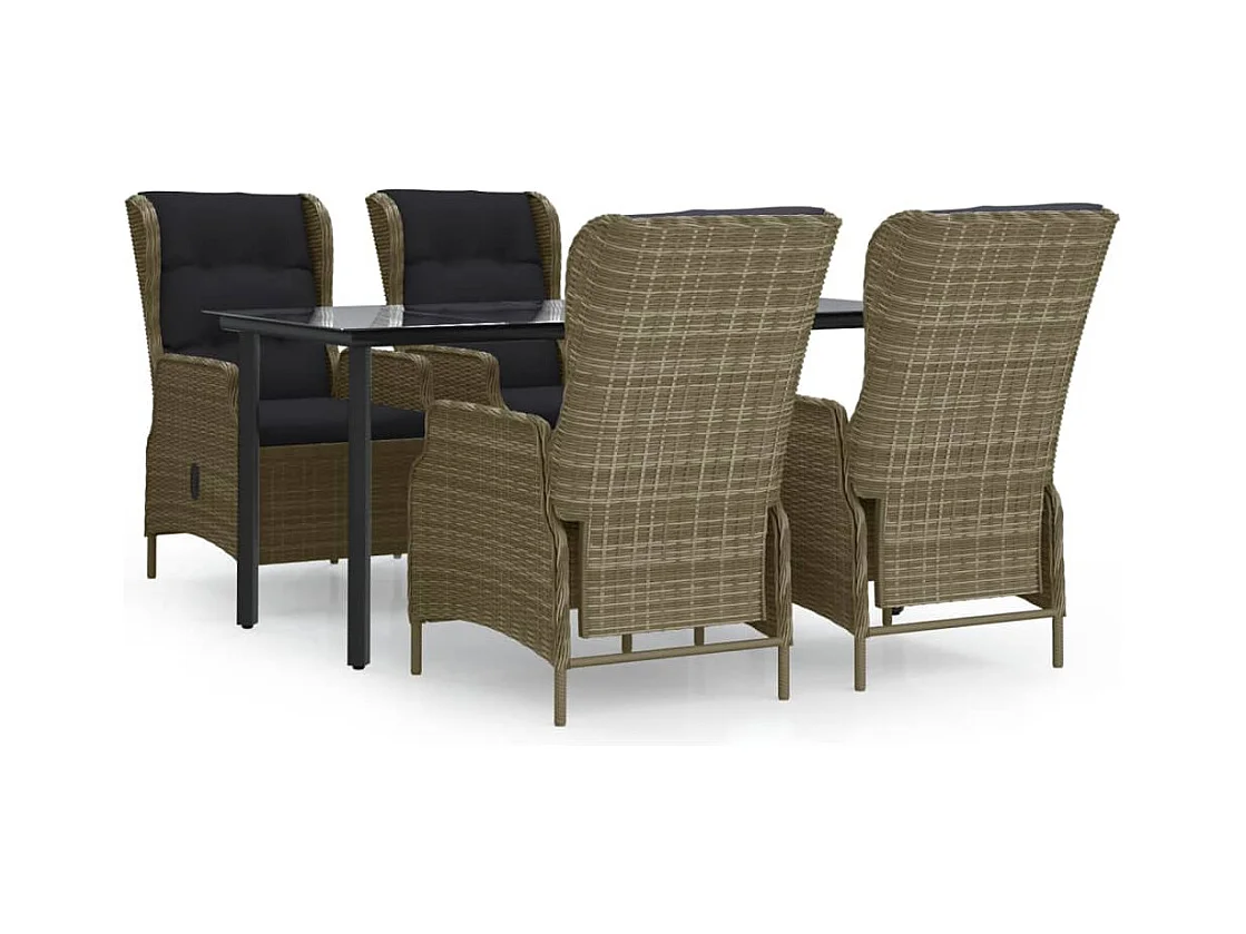 Mobili da pranzo e cuscini da giardino 5 pezzi in resina intrecciata nera 02_0014865