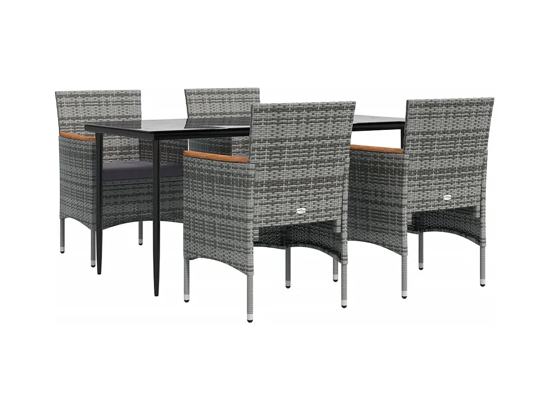 Set da pranzo da giardino mobili da esterno e cuscini 5 pezzi grigio/nero 02_0014189
