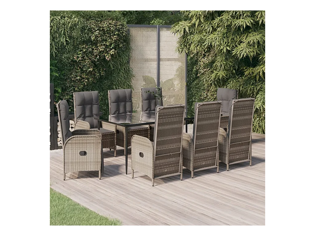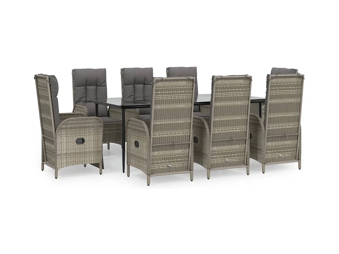 Set da Pranzo da Giardino 9 pz con Cuscini in Polyrattan Grigio