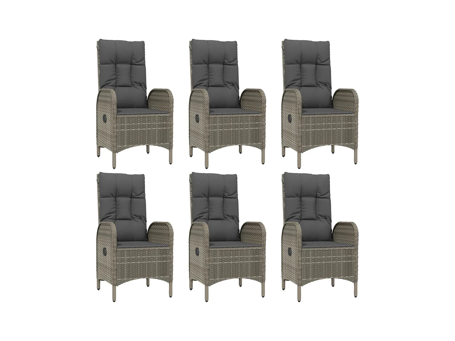Set da Pranzo da Giardino 7 pz con Cuscini in Polyrattan Grigio