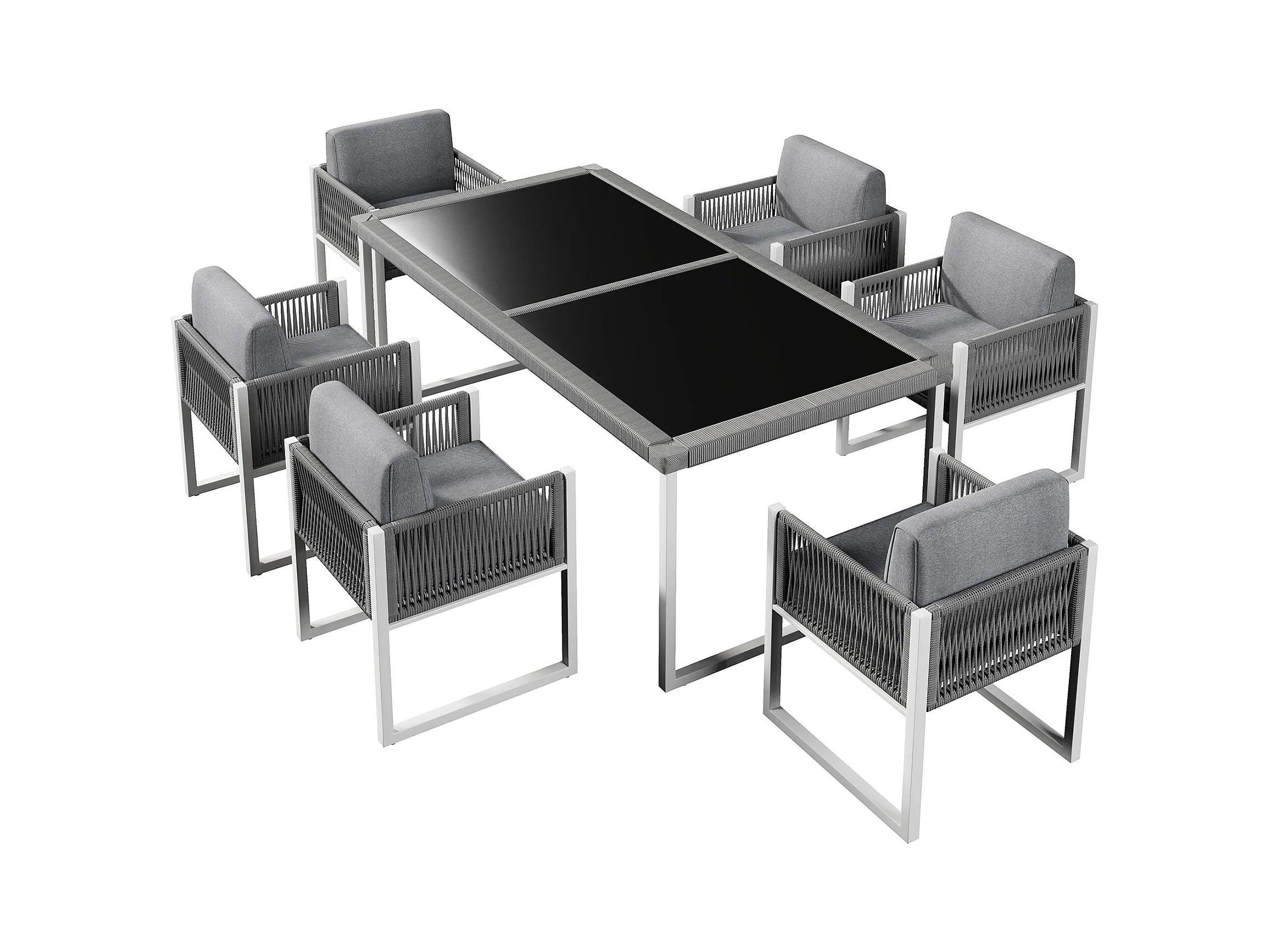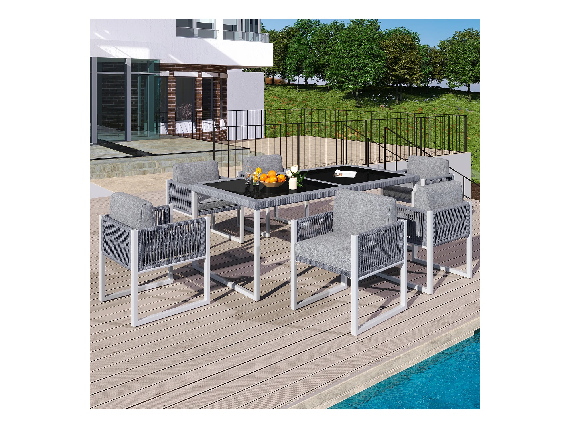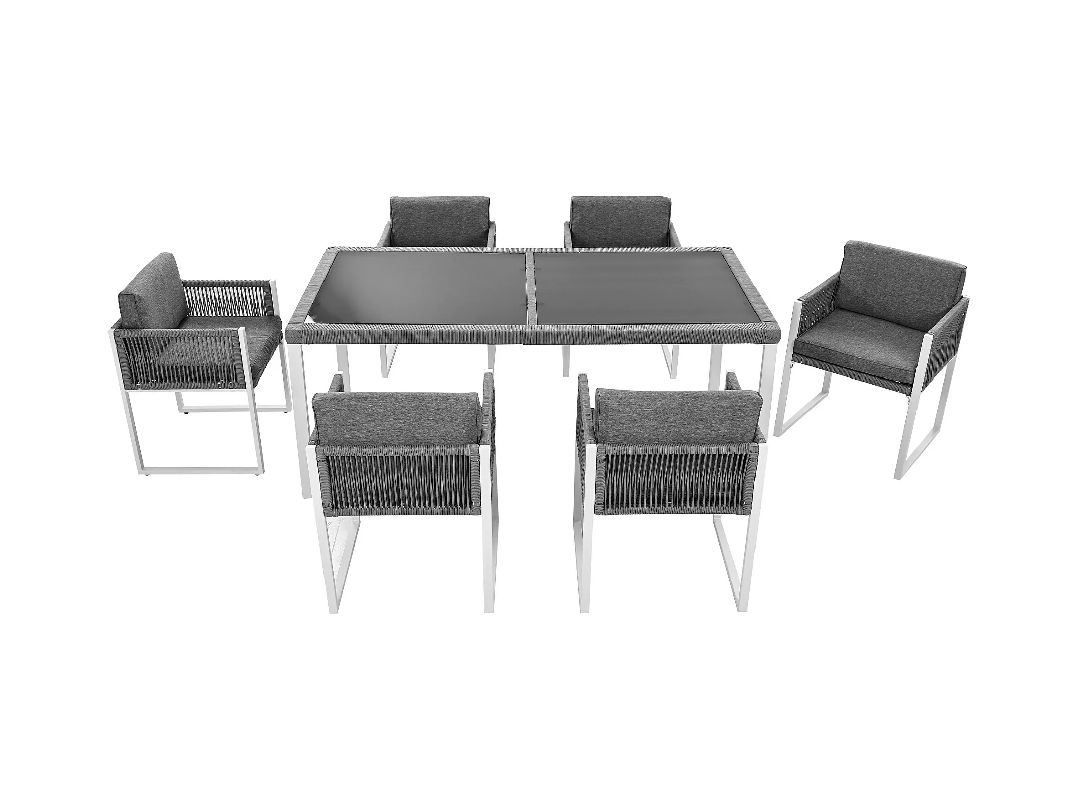 Set da pranzo in giardino per 6 persone - 6 poltrone - 1 tavolo - struttura in ferro zincato - in tessuto rimovibile e lavabile - grigio