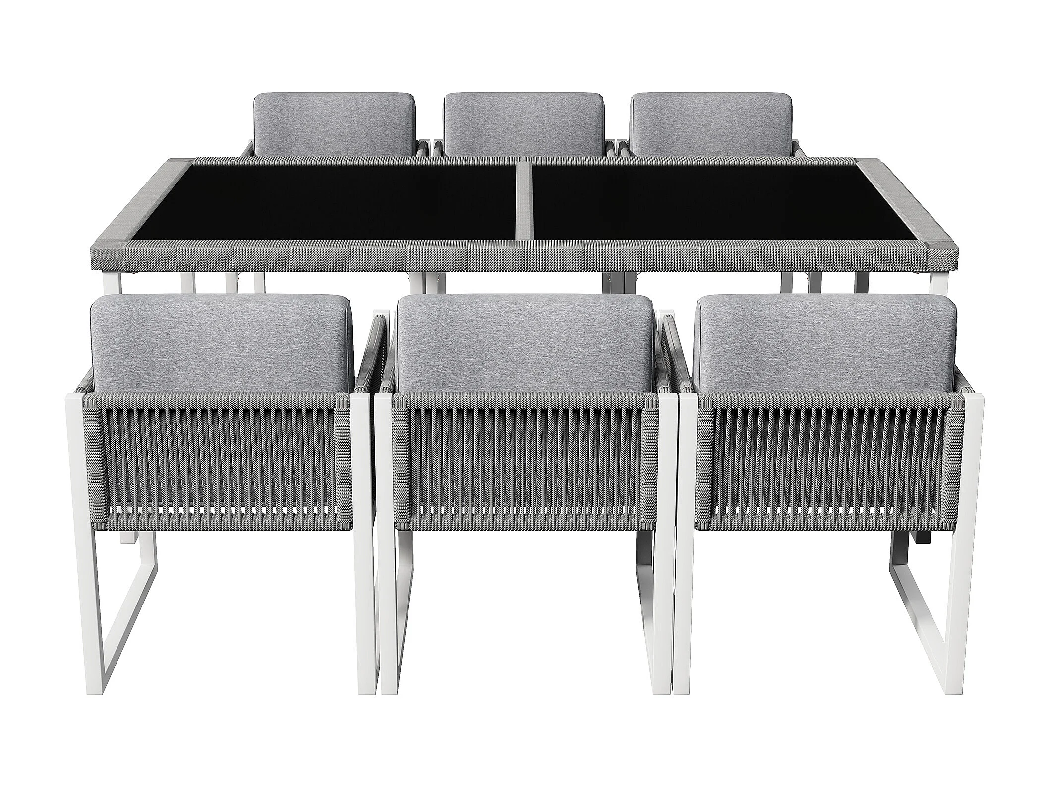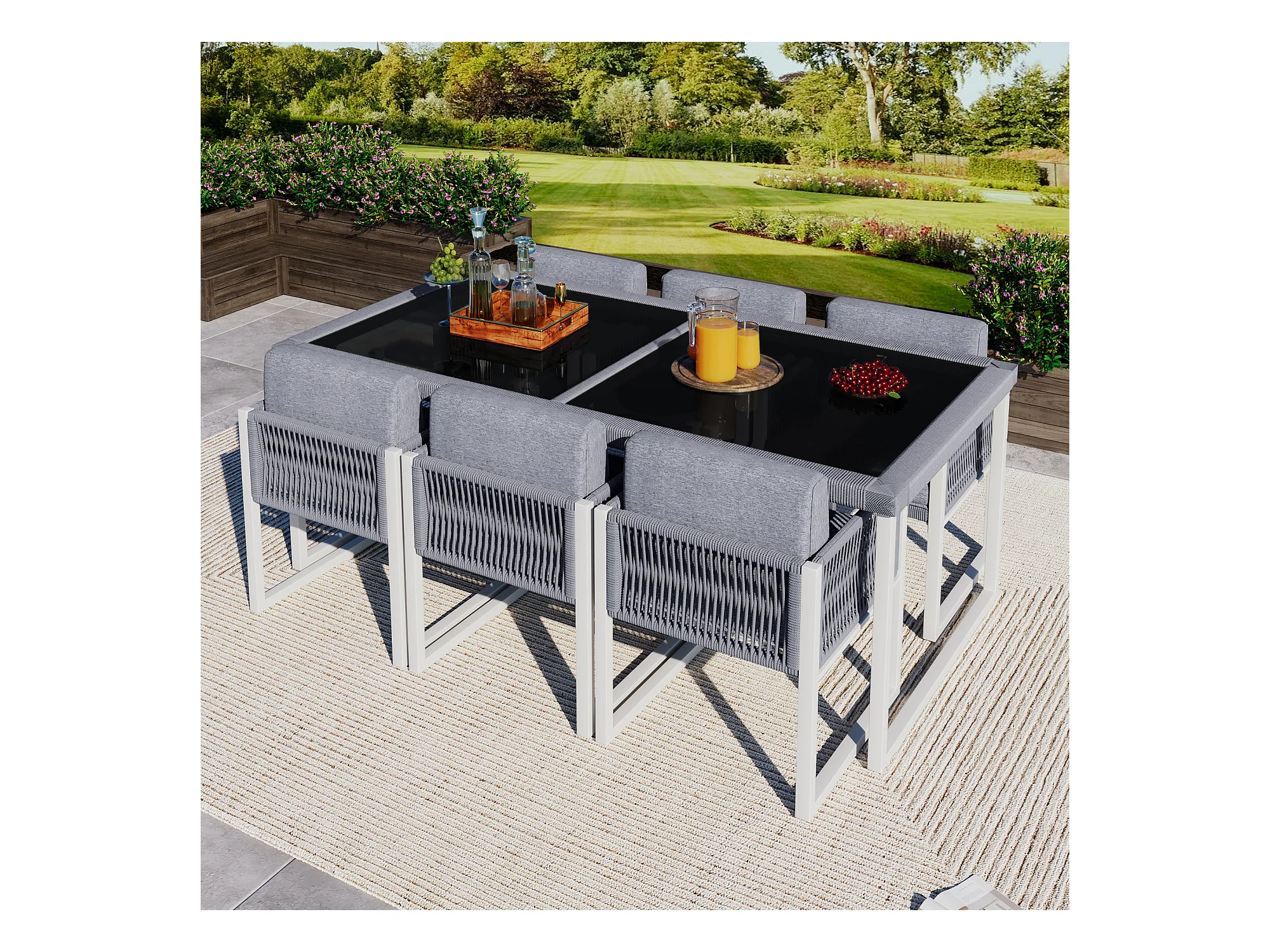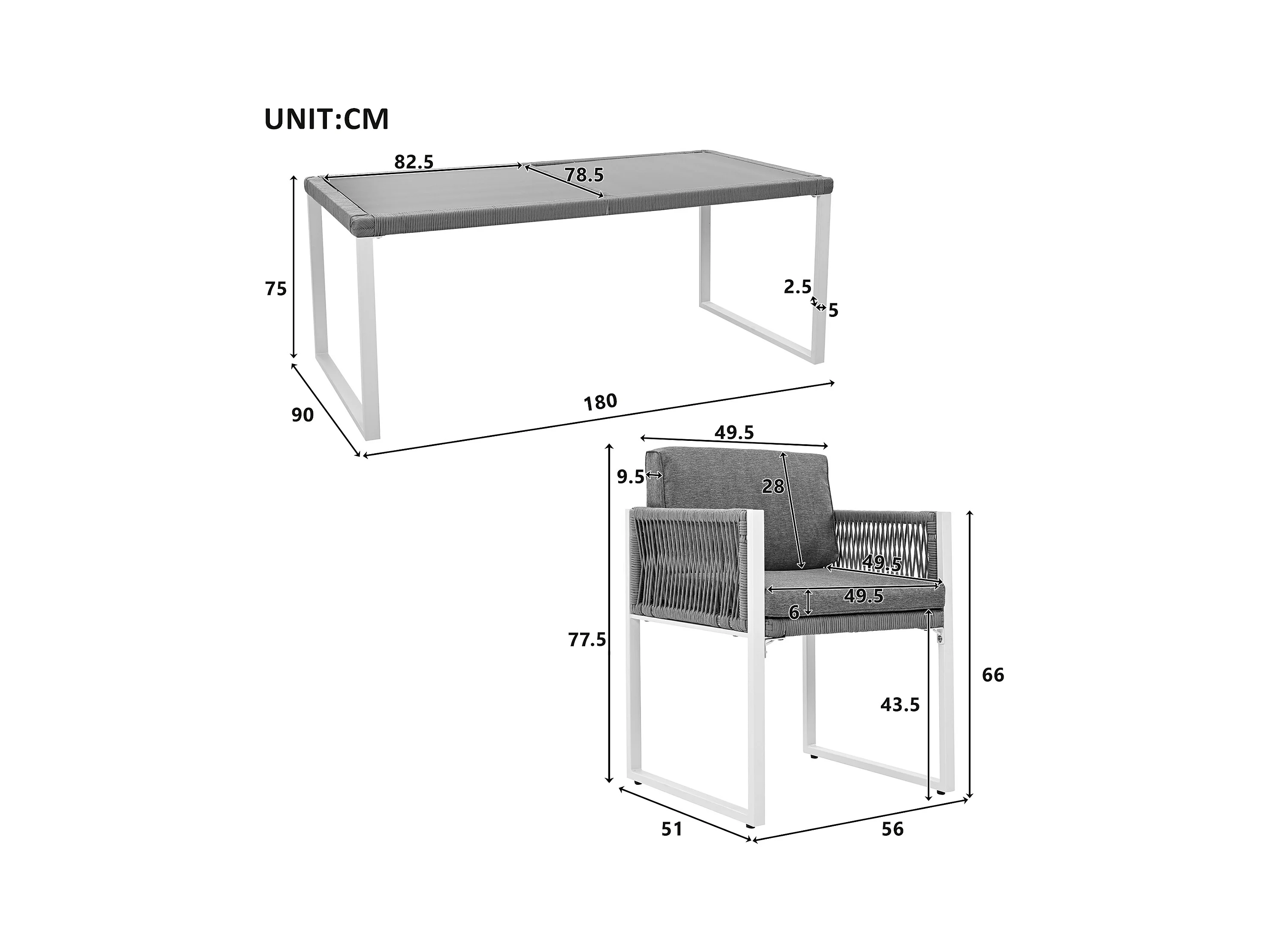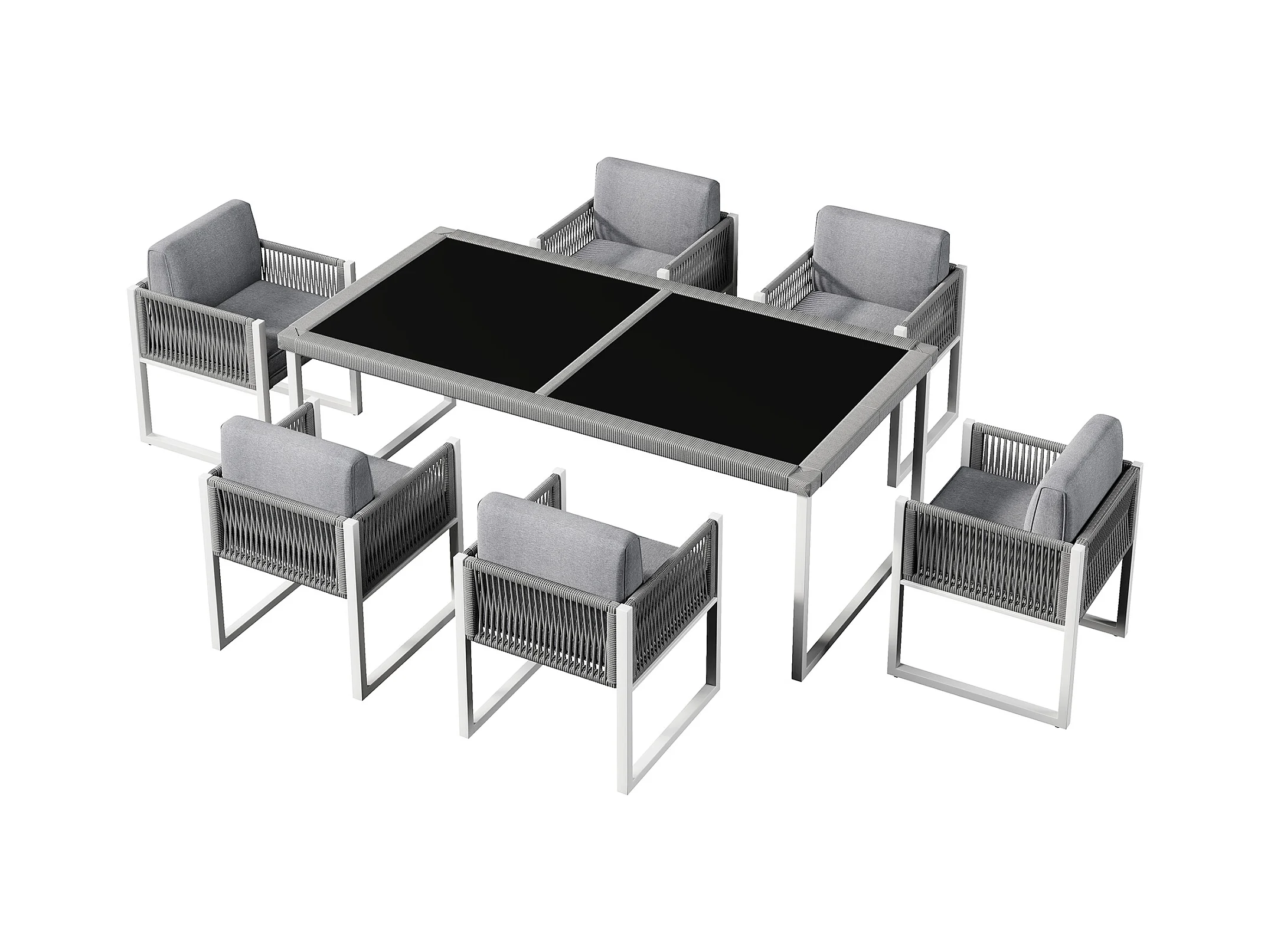 Set da pranzo in giardino per 6 persone - 6 poltrone - 1 tavolo - struttura in ferro zincato - in tessuto rimovibile e lavabile - grigio