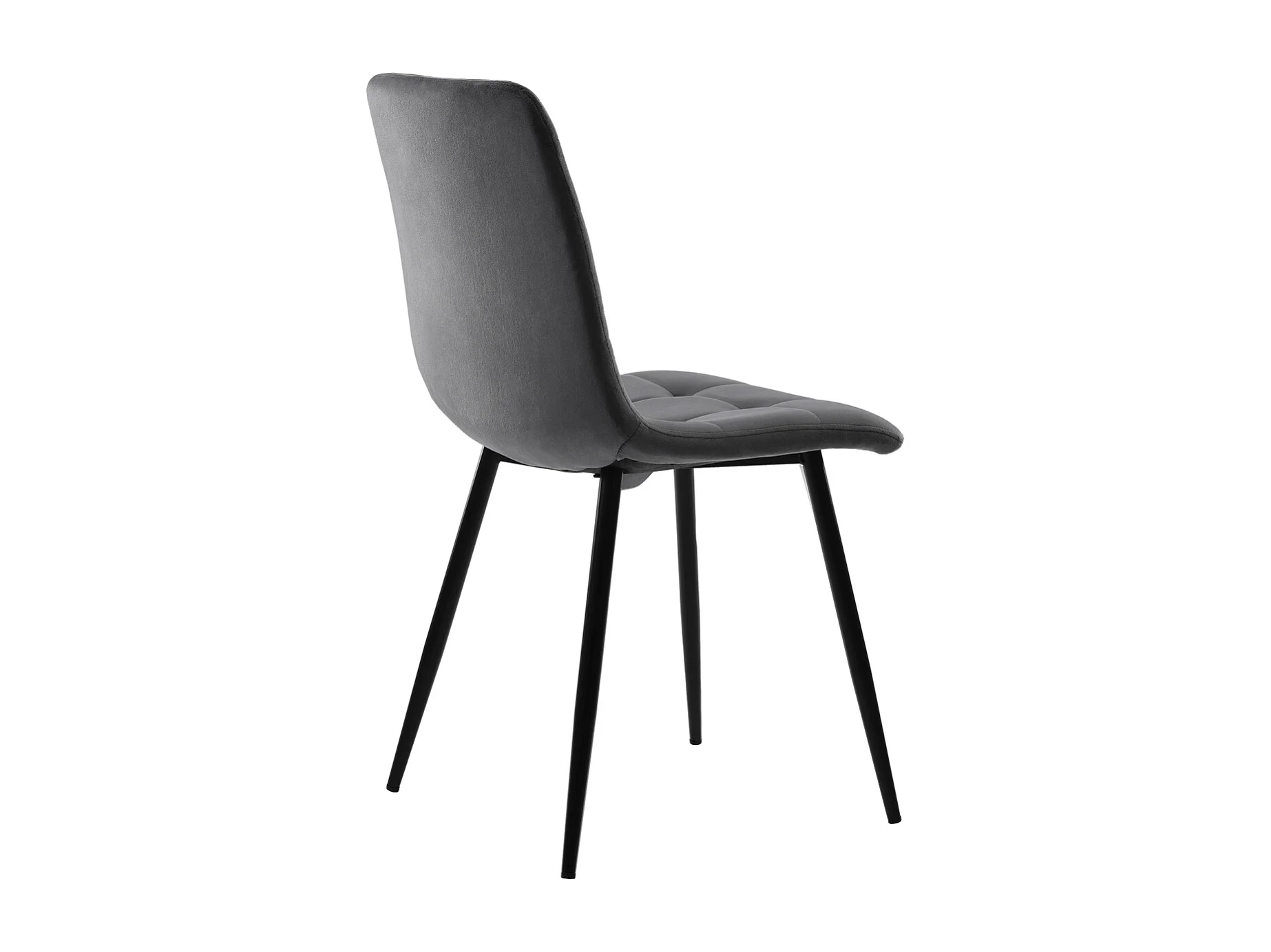 Set da pranzo nero da 140x80 cm con 4 sedie in velluto grigio scuro e gambe in ferro nero.