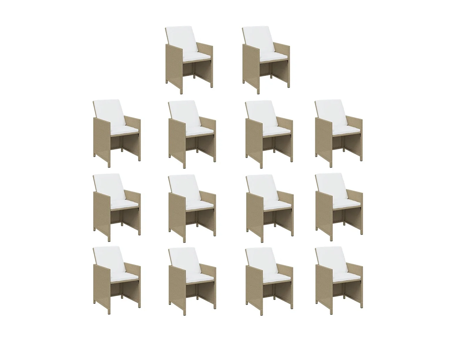 Set da Pranzo per Giardino 19pz con Cuscini in Polyrattan Beige