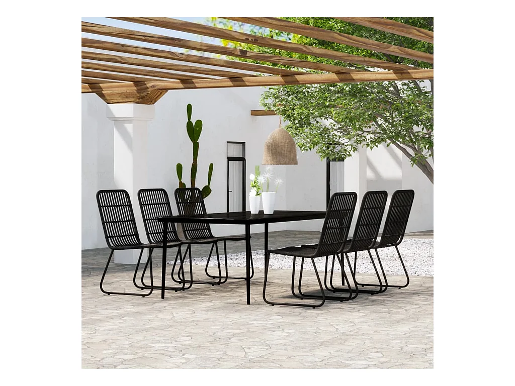 Set Mobili da Pranzo per Giardino 7 pz Nero
