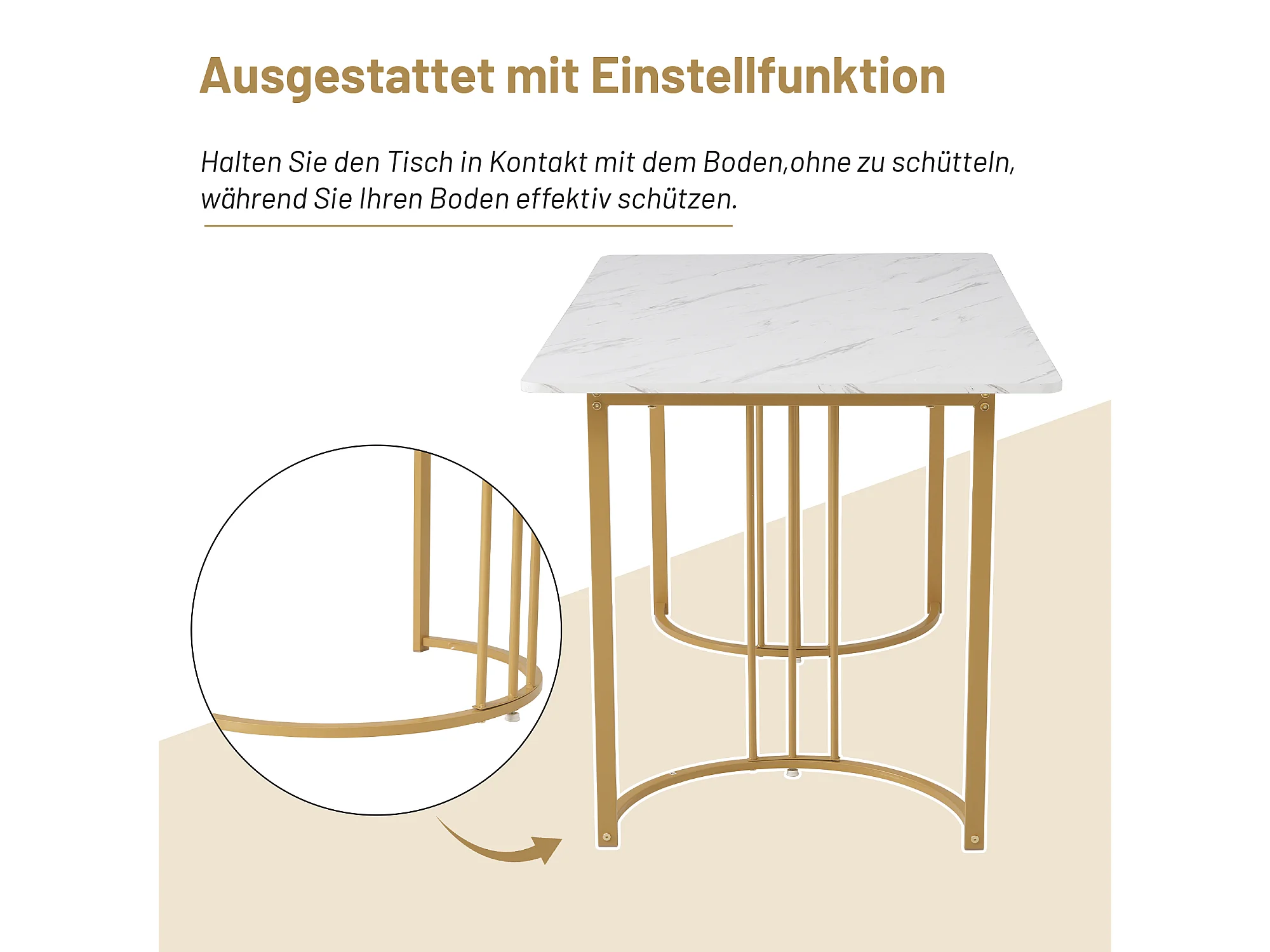 Set da pranzo (4 sedie), tavolo in MDF con gambe in metallo dorato, sedie in velluto beige (80x80x75 cm)