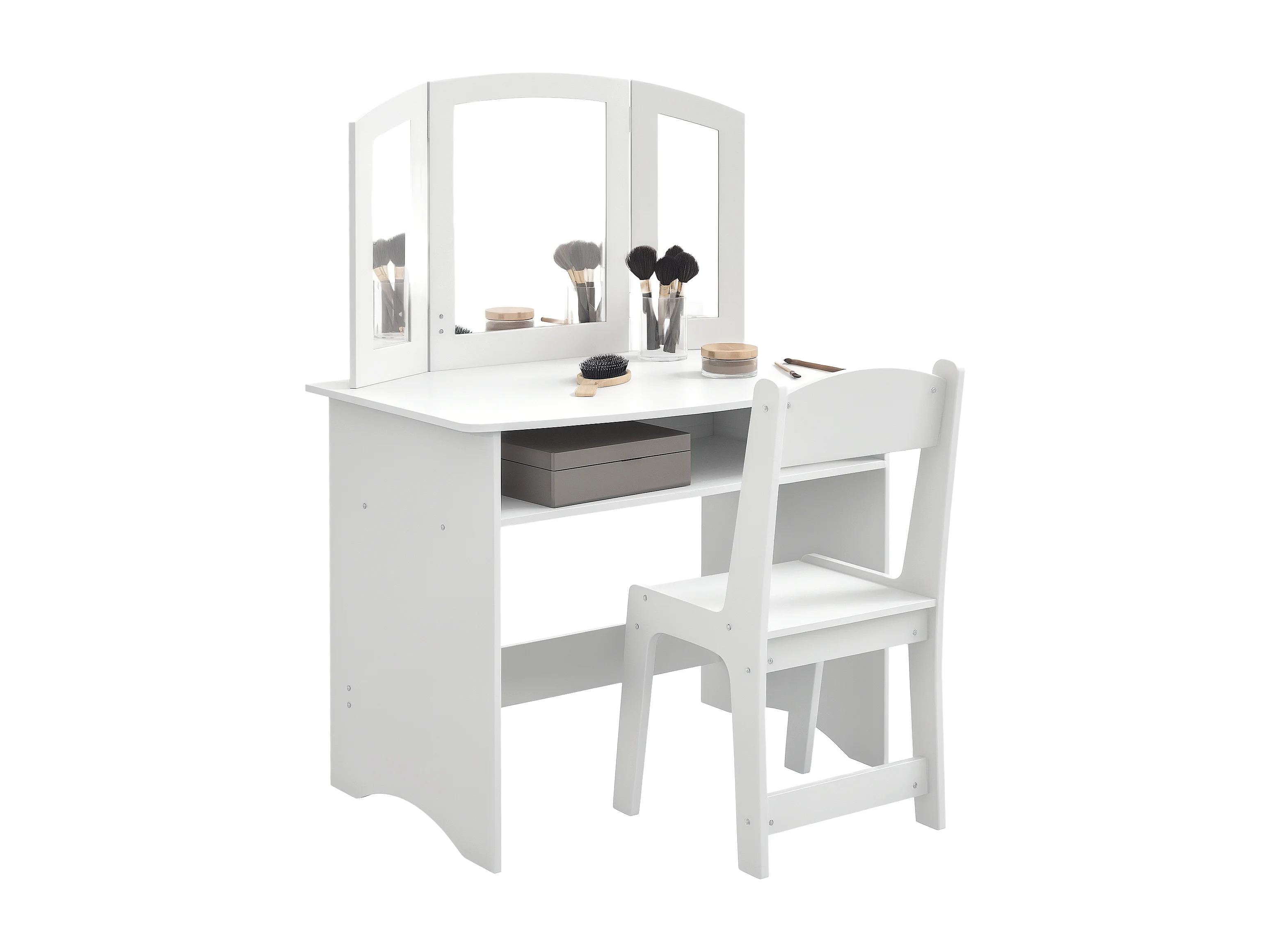 Set da trucco bambine con sedia e tavolo toeletta in legno bianco