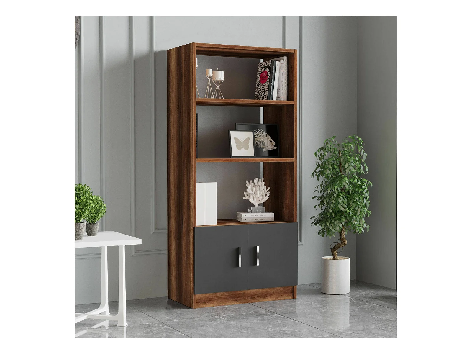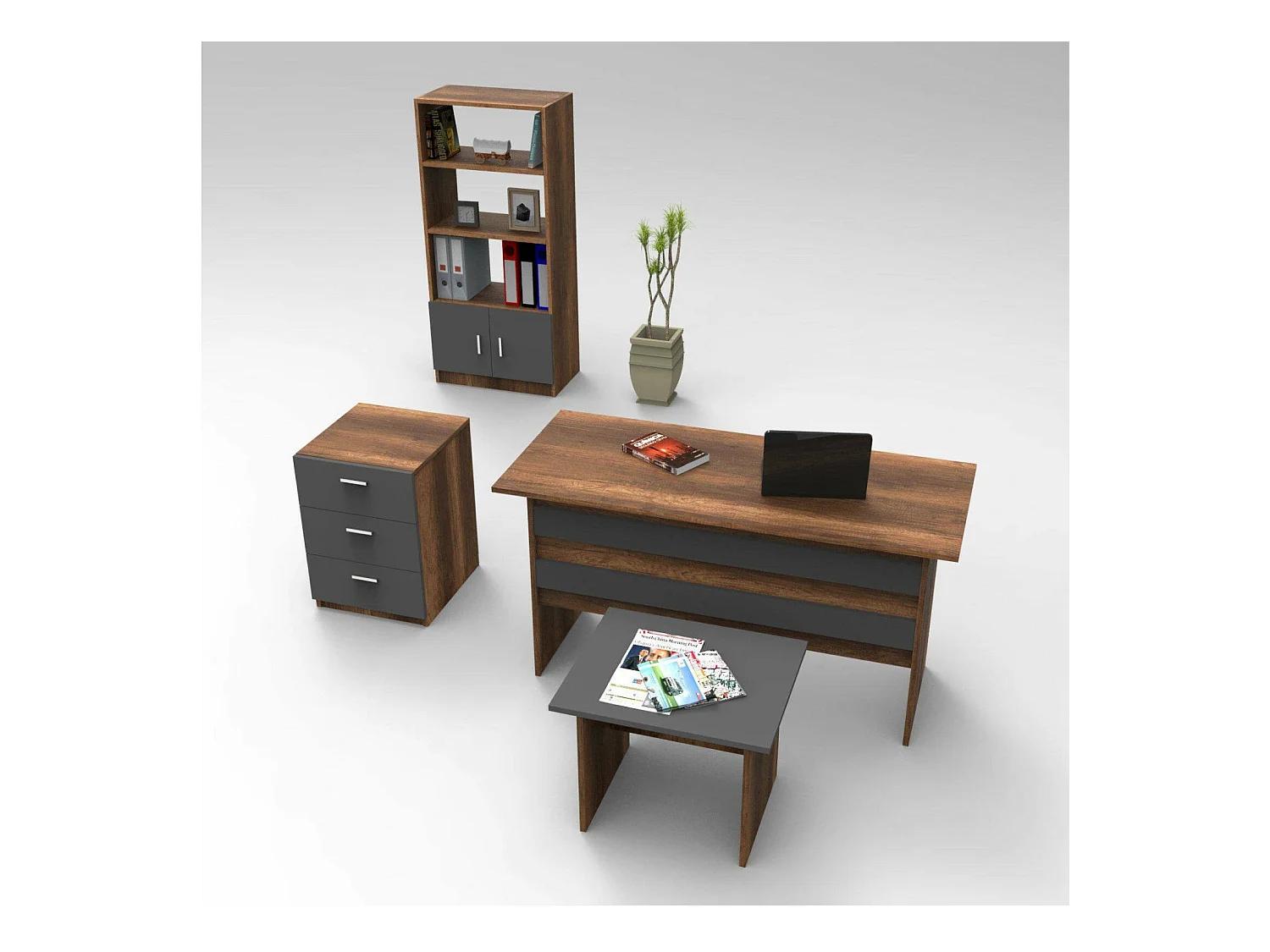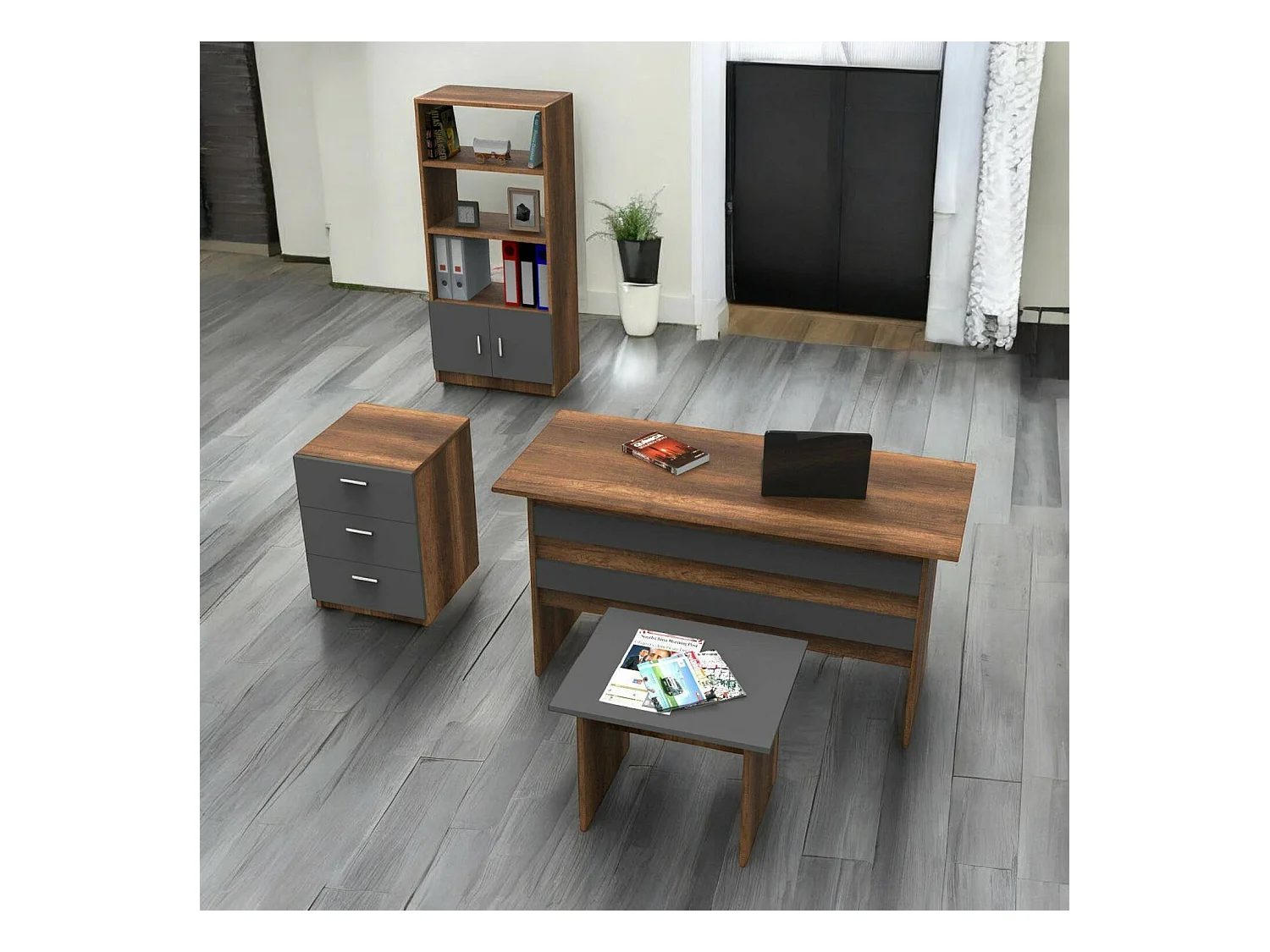 Dmora - Set da ufficio Abutilon, Set scrivania e cassettiera, Noce e Antracite