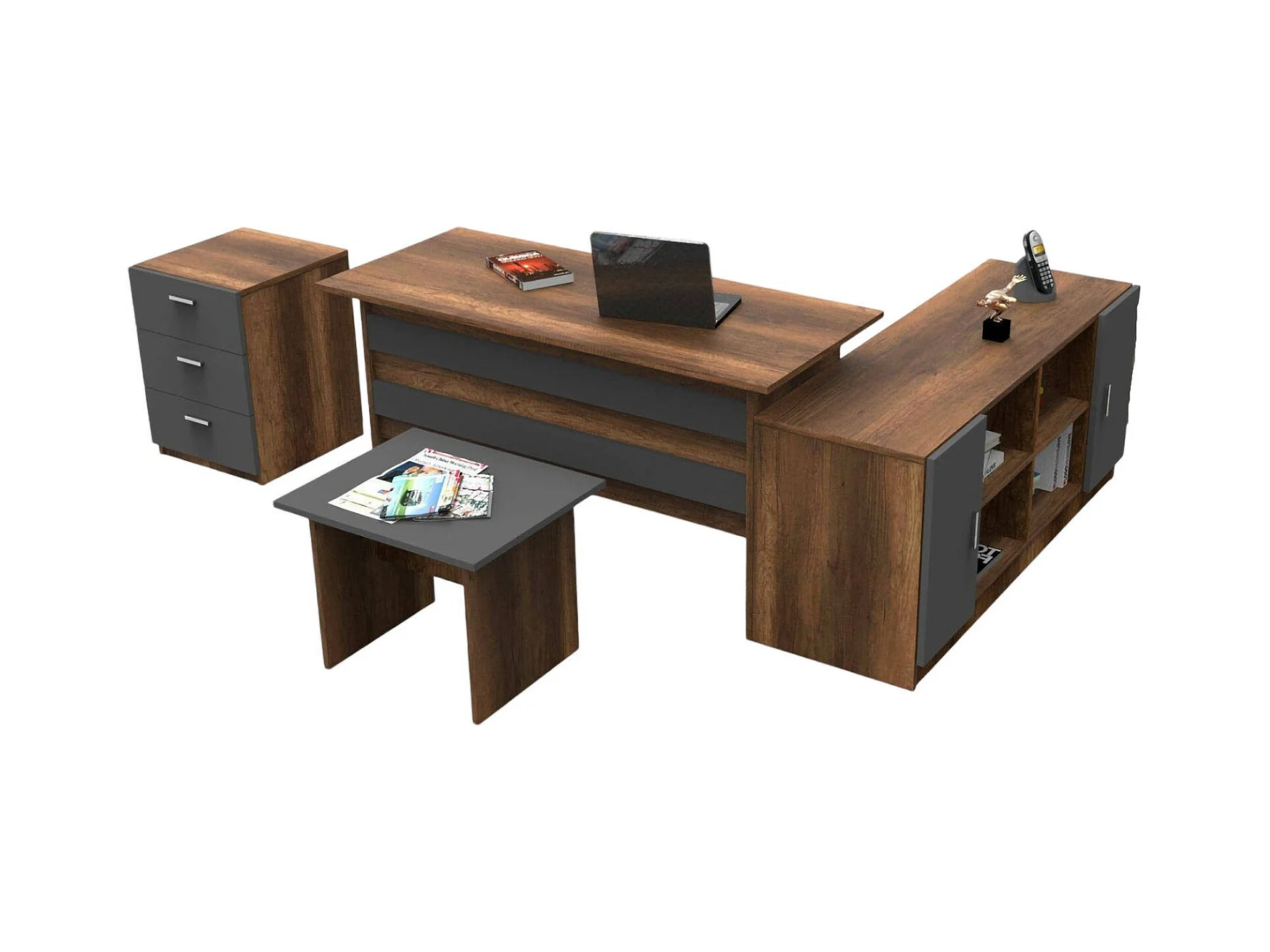 Dmora - Set da ufficio Abutilon, Set scrivania e cassettiera, Noce e Antracite