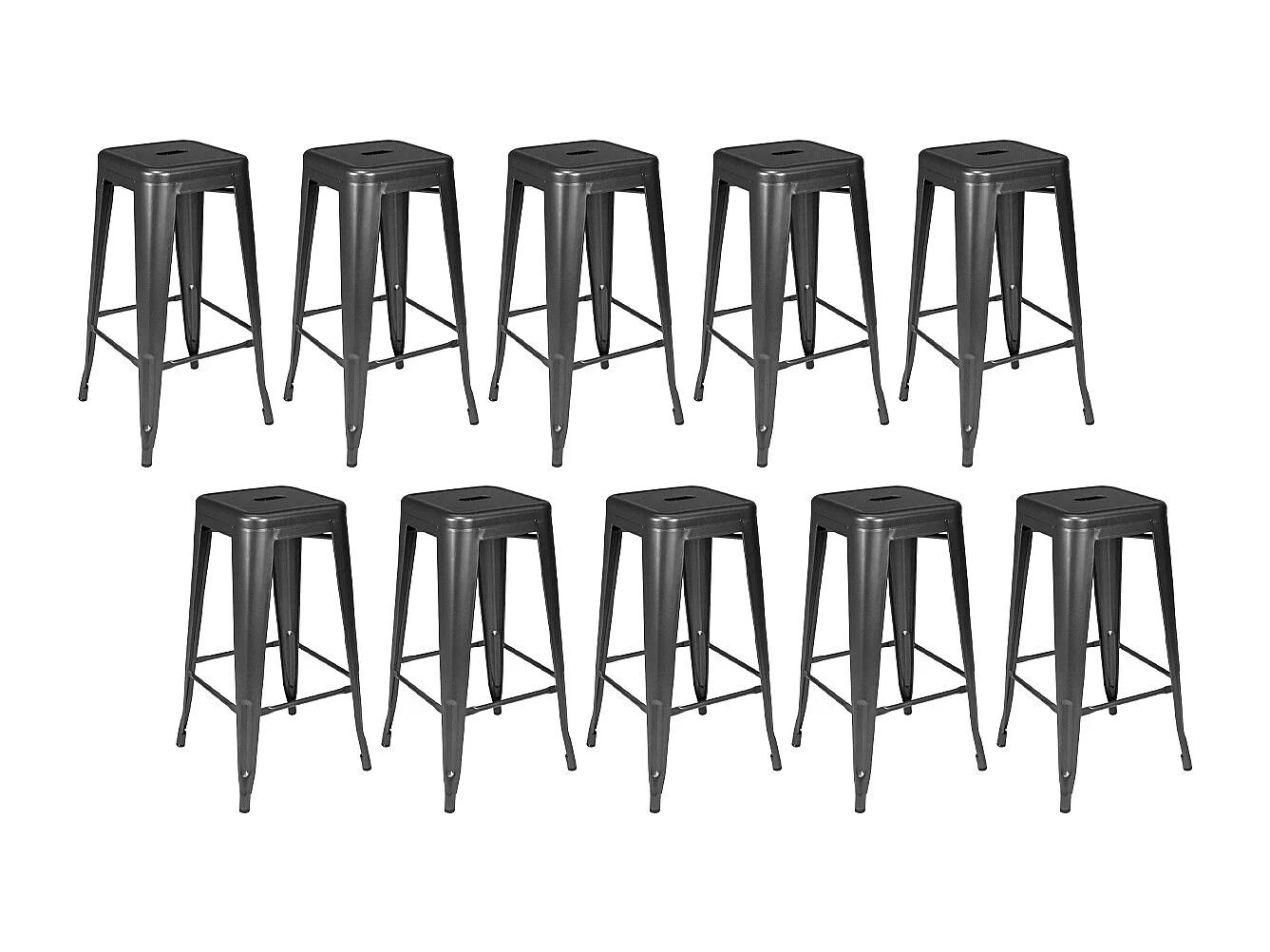 Set di 10 sgabelli bar cucina industriali in metallo, sgabelli impilabili - Maggie