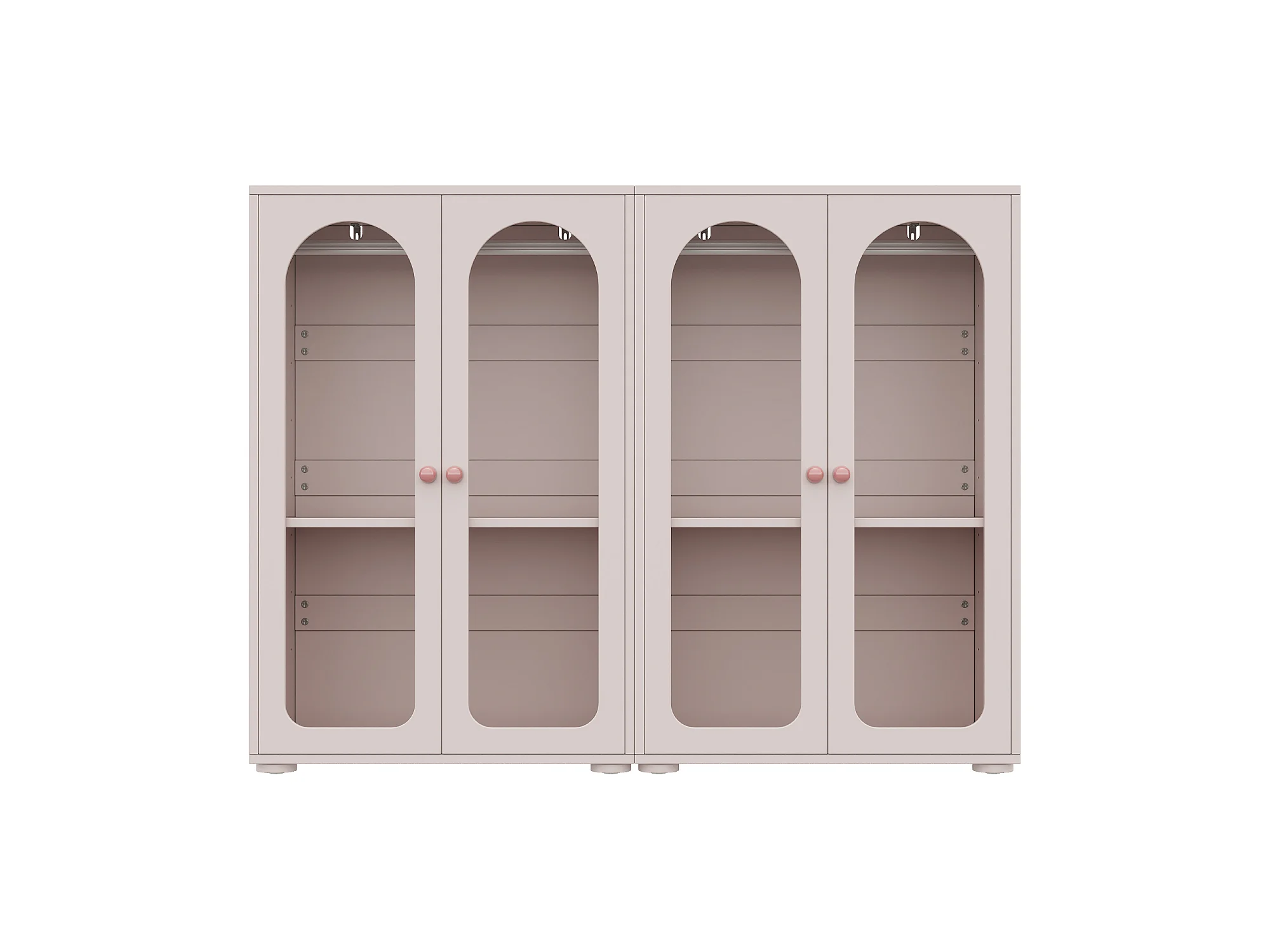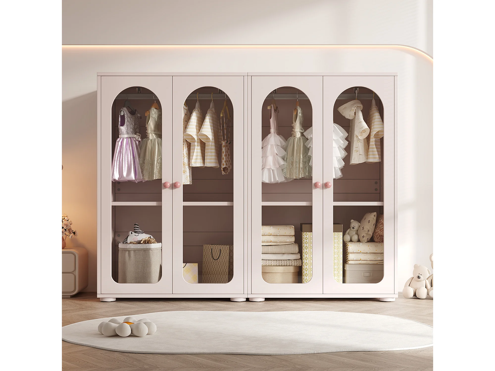 Set di 2 armadi per bambini 160x50x120 cm - Con barra - 4 porte in acrilico - Maniglie in ceramica - Finitura verniciata - Rosa