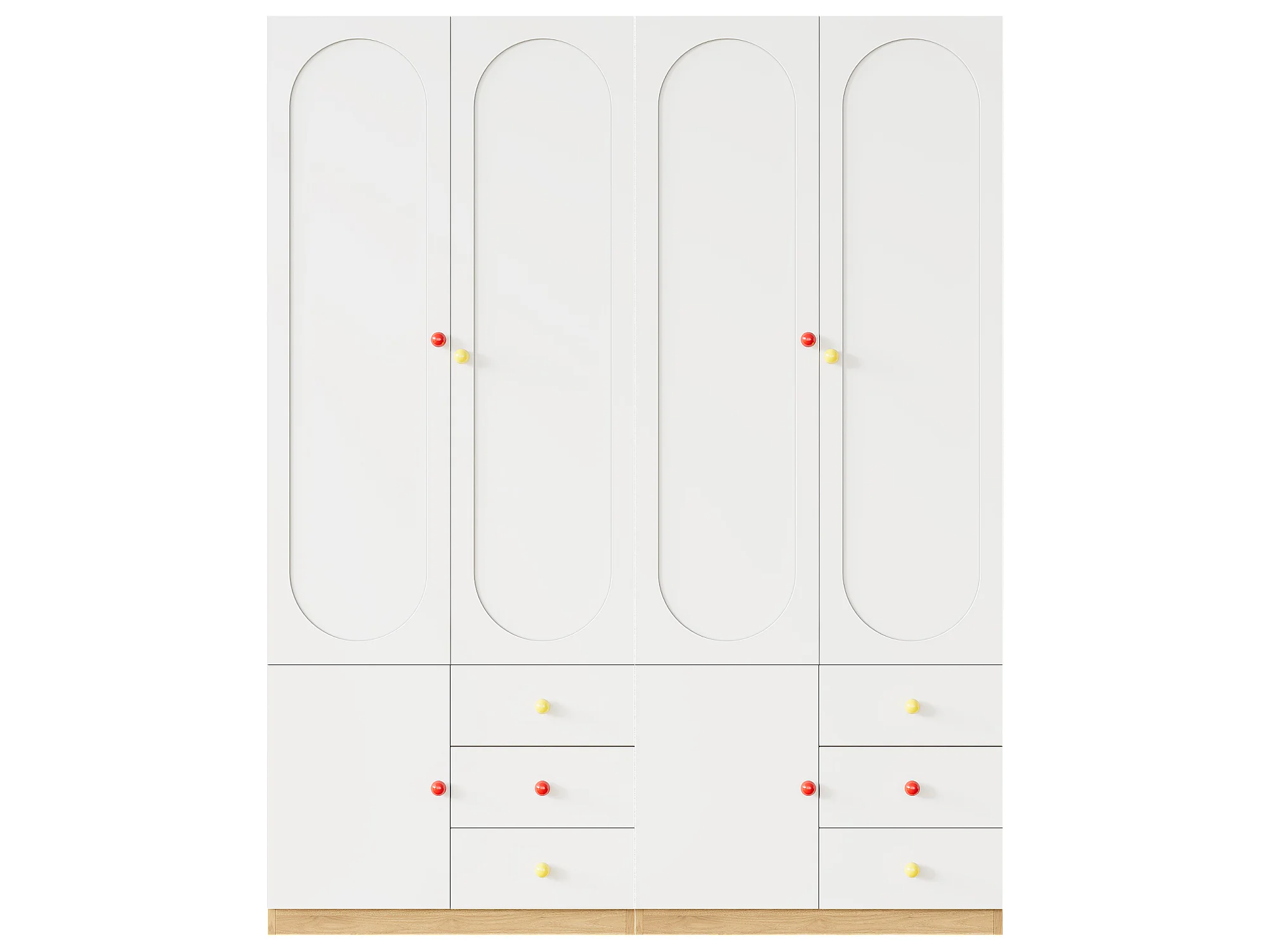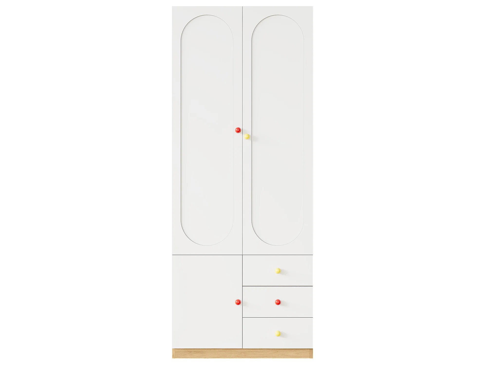 Set di 2 armadi per bambini 80x45x200 cm - Con penderia - 2 porte e 3 cassetti - Maniglie in ceramica - Finitura lucida - Bianco